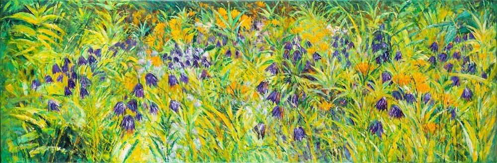 Carl Scanes [British, b. 1964] In the Border, 2003 signed lower left and inscribed to reverse oil on canvas 50 x 152cm (unframed)