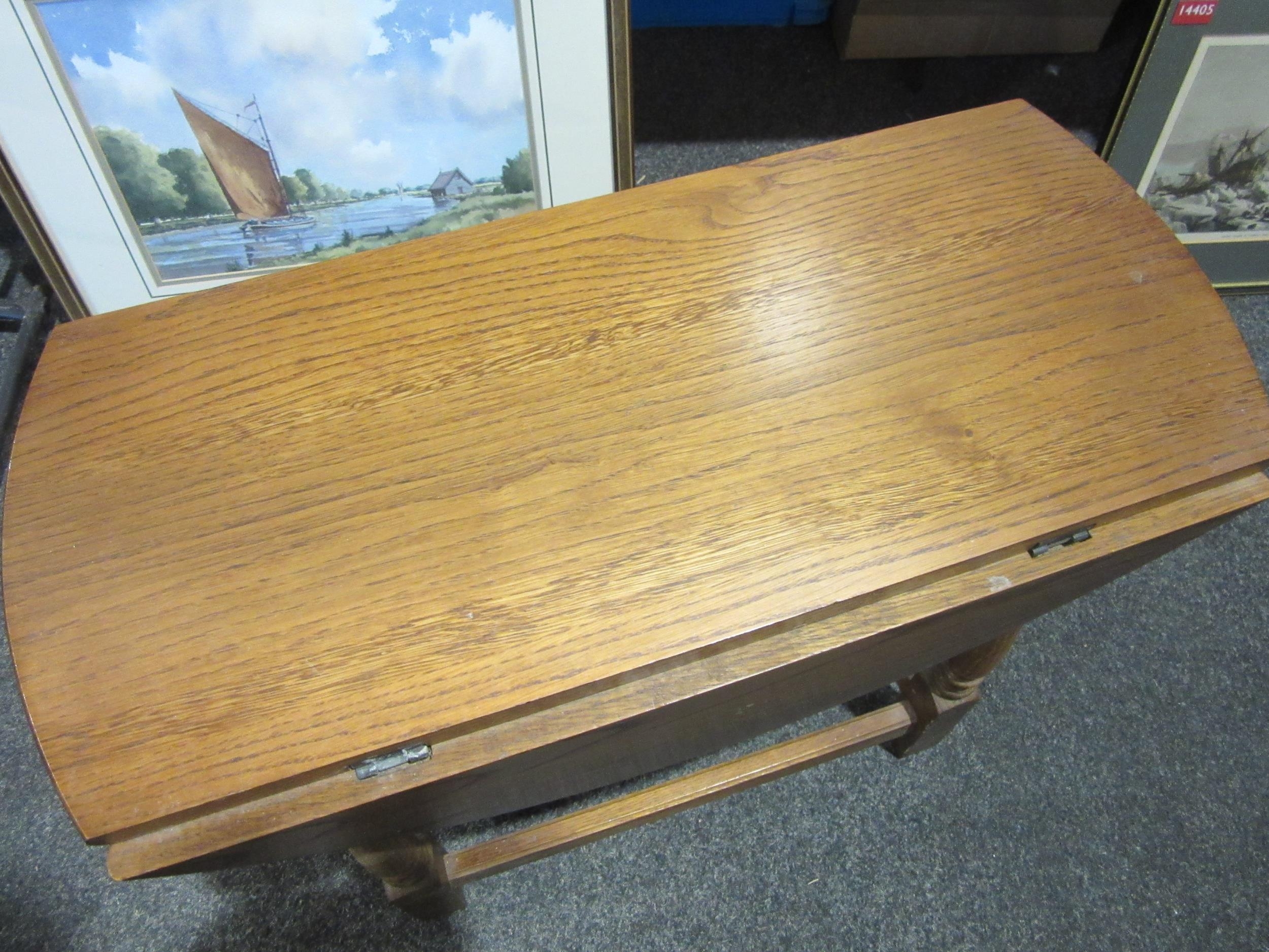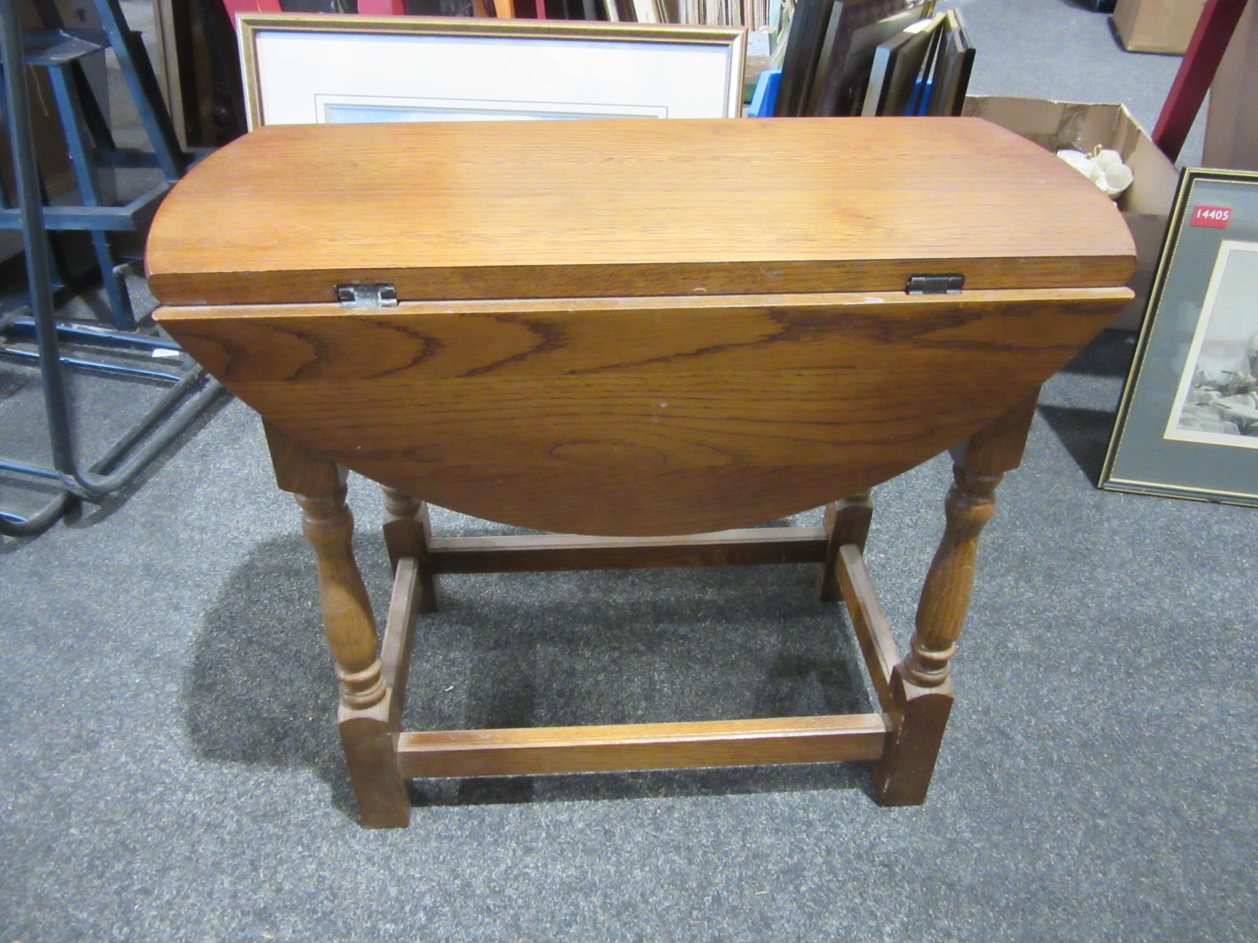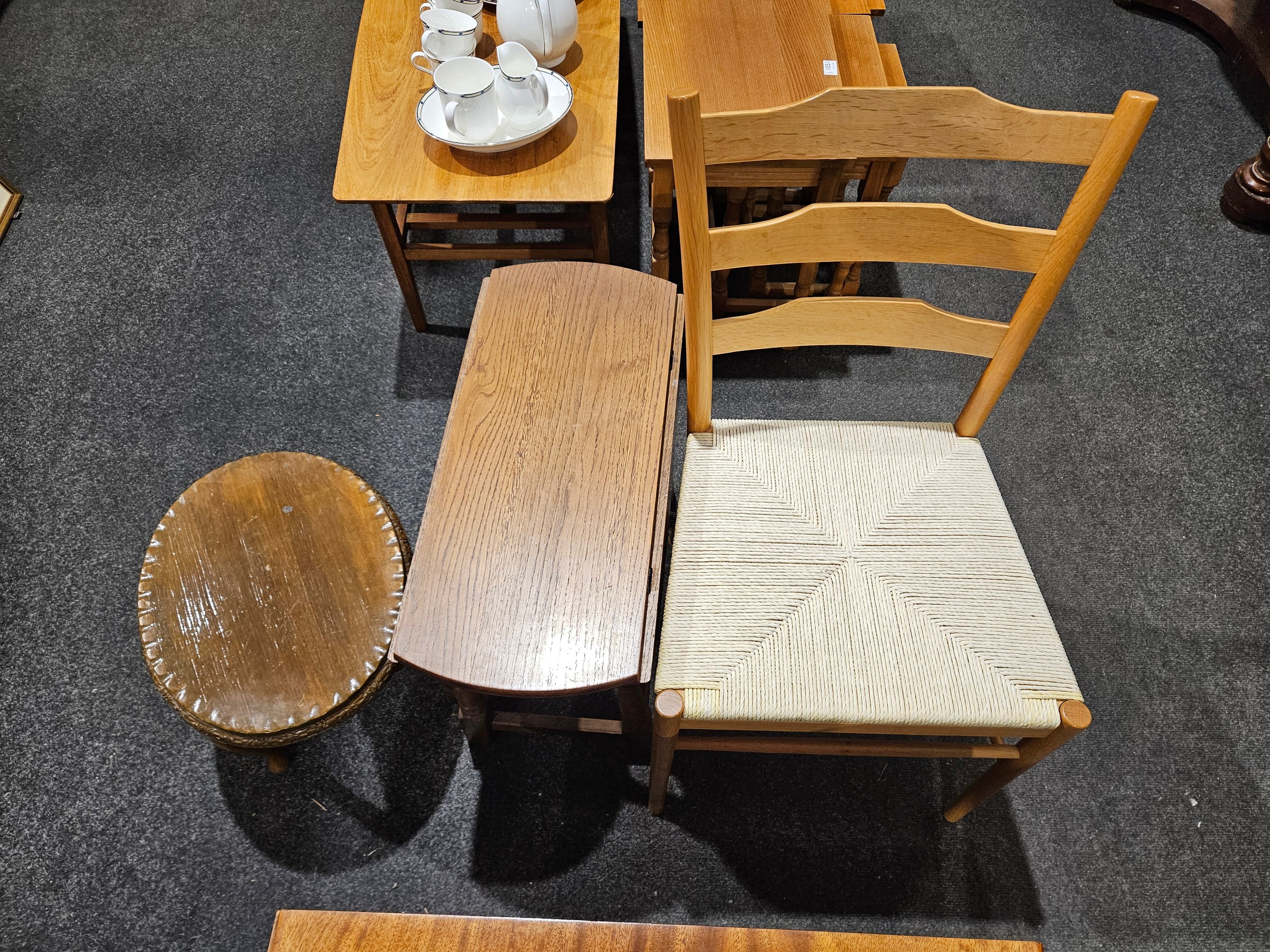 An oak drop-flap occasional table with a seagrass seat chair and oval table (3)