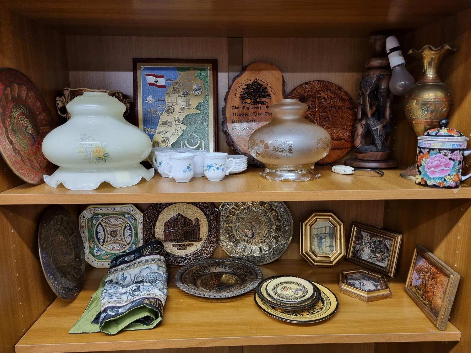 A large quantity of decretive Items on two shelves.