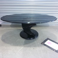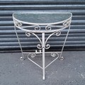 Cast iron and glass topped half moon table.