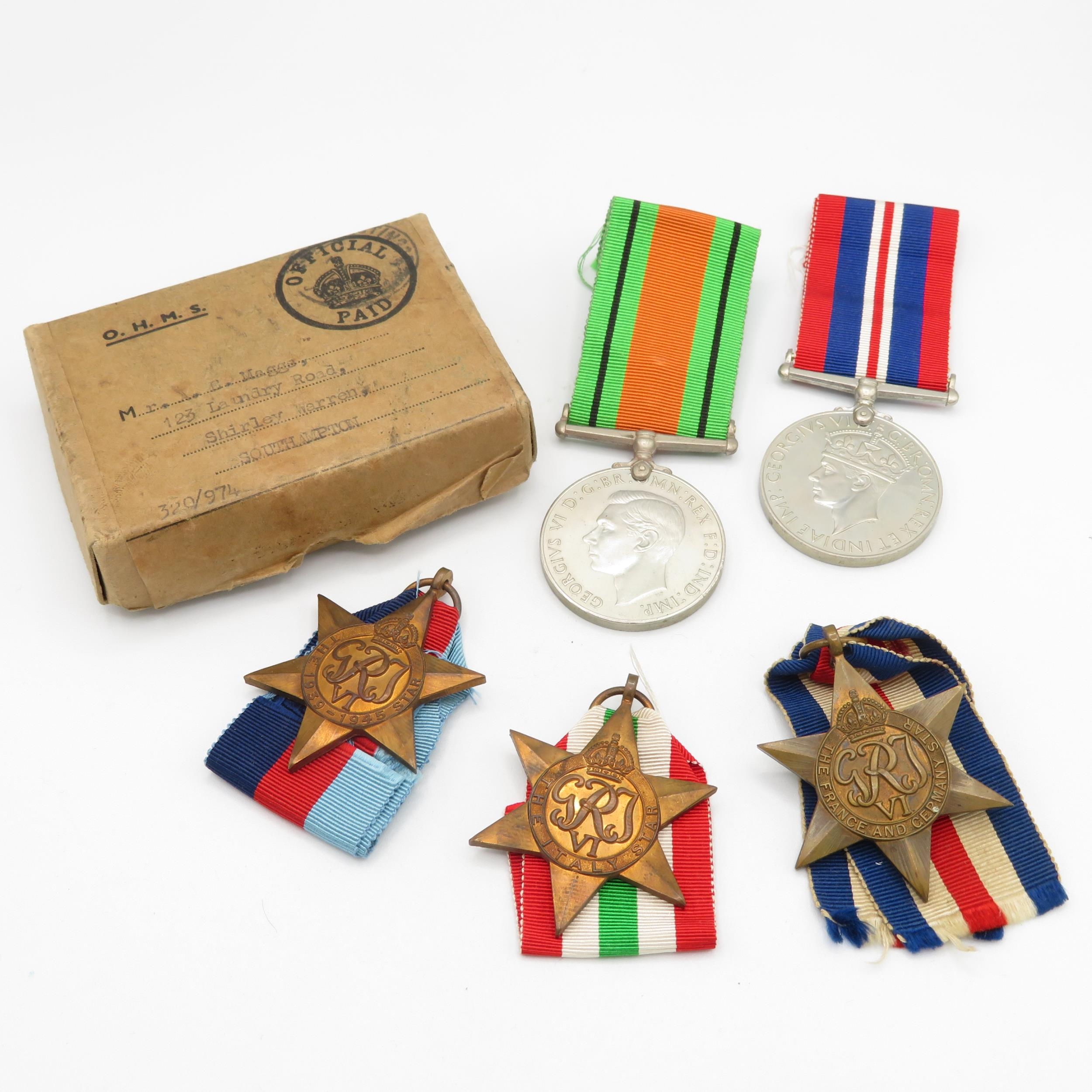 Boxed WWII Army Medal Group inc. Ital, -France and Germany Stars
