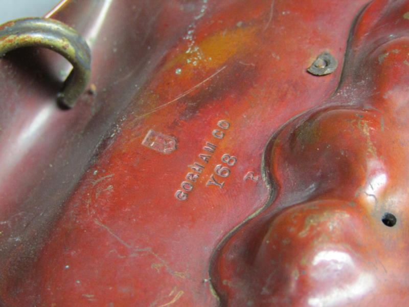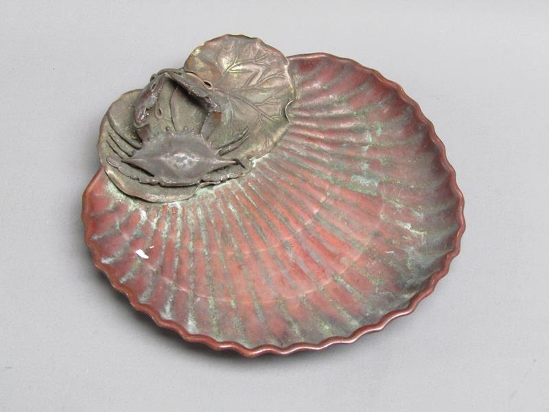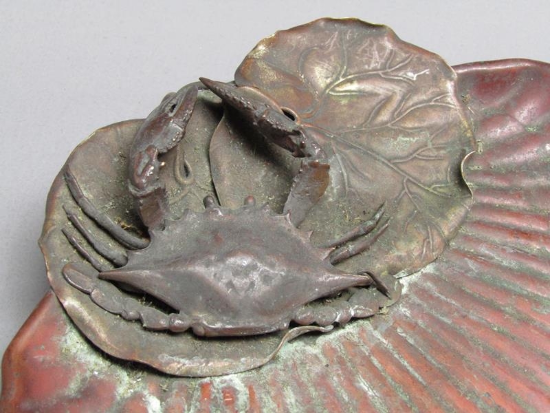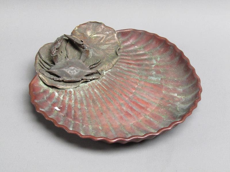 A Gorham & Co. crab and shell dish, the dish of red patination, the crab and leaves of naturalistic colour, base stamped Gorham & Co Y68, with anchor motif, 23cm diam.
