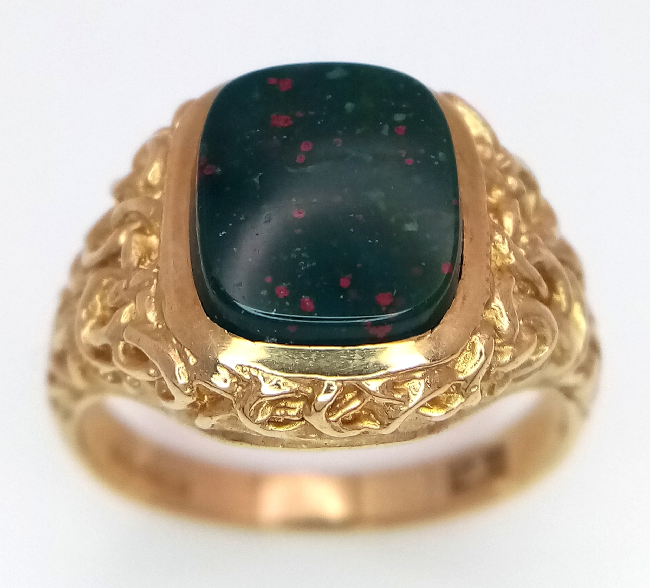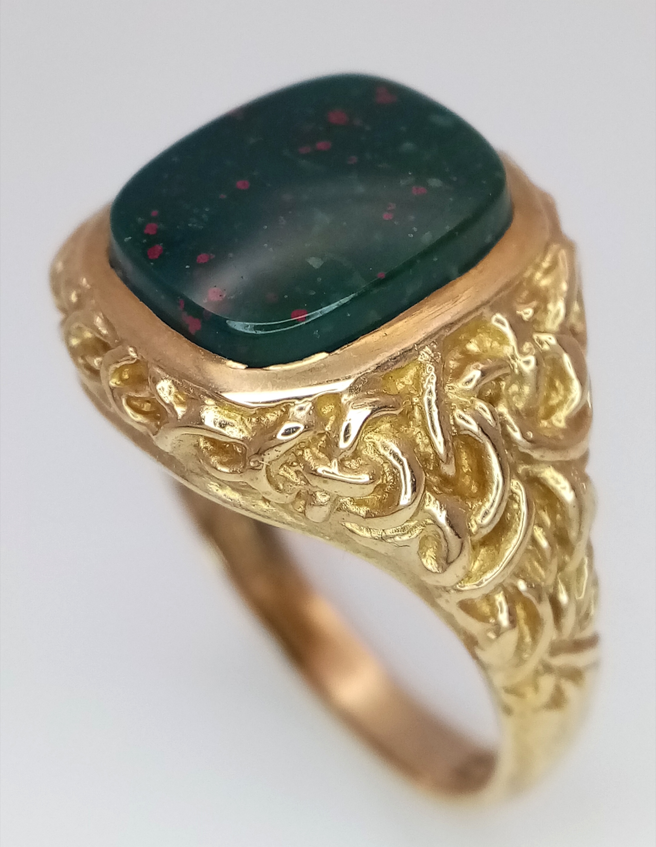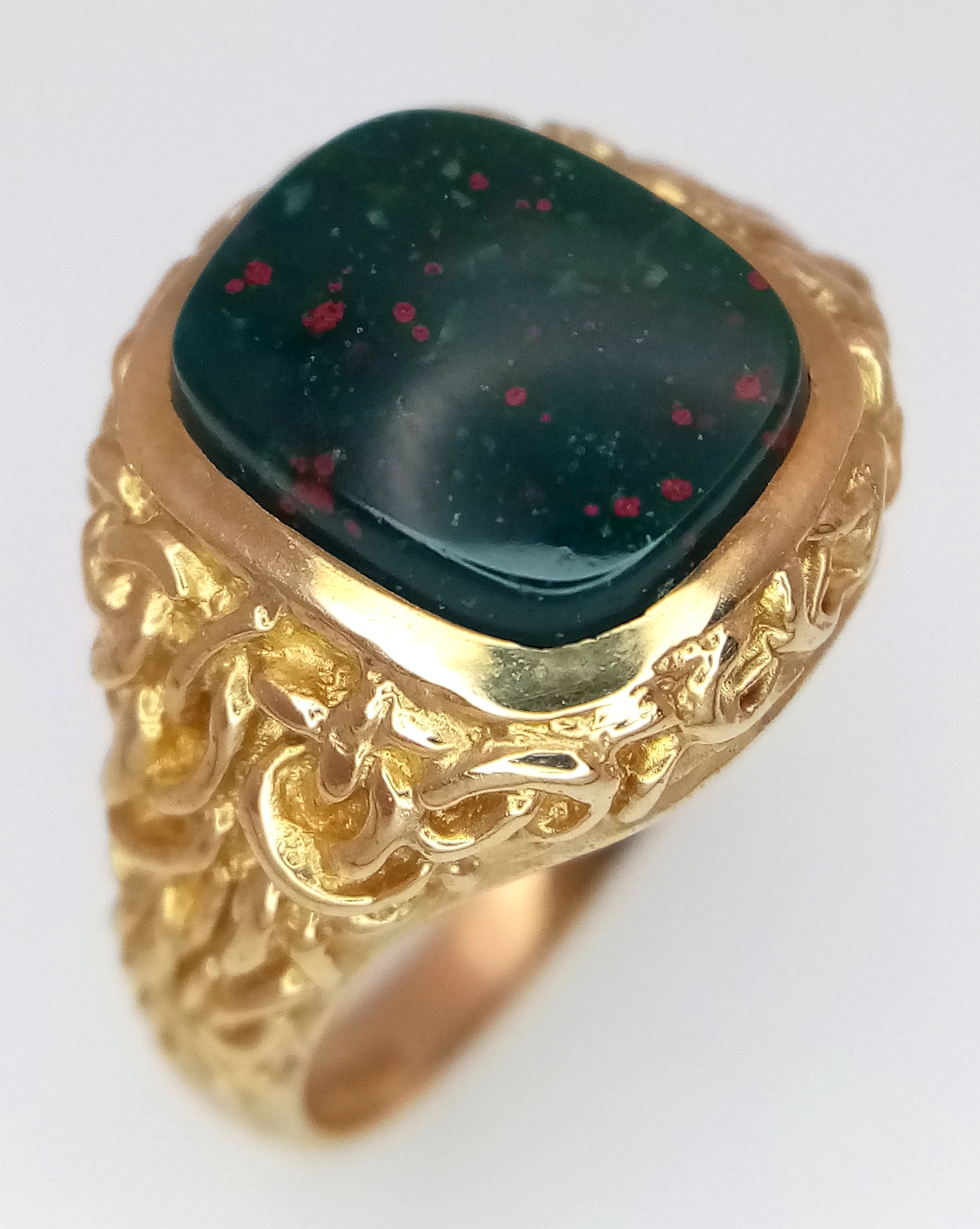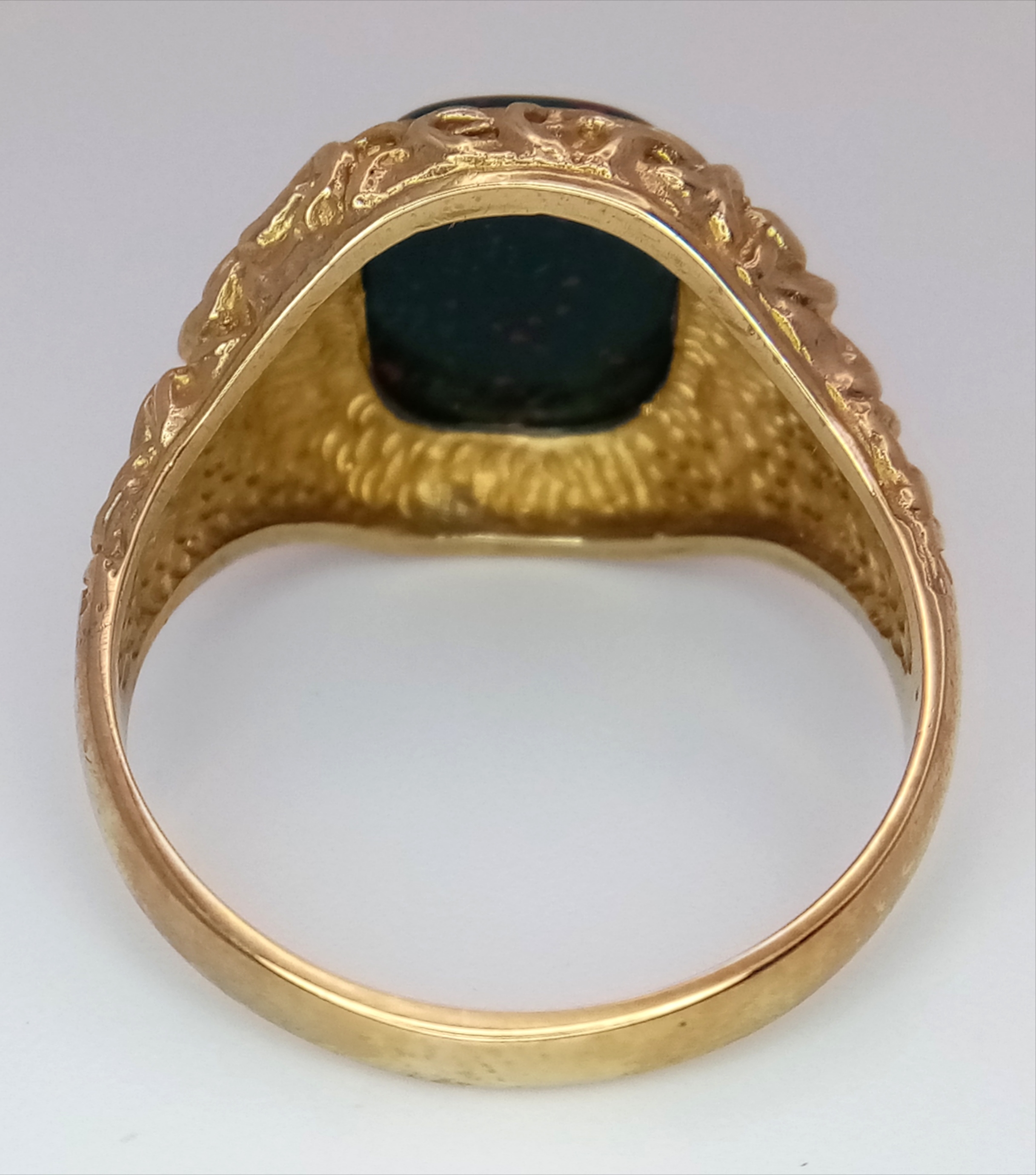A Vintage 9K Yellow Gold, Bloodstone, Gents Signet Ring. Size U. 6.2g.