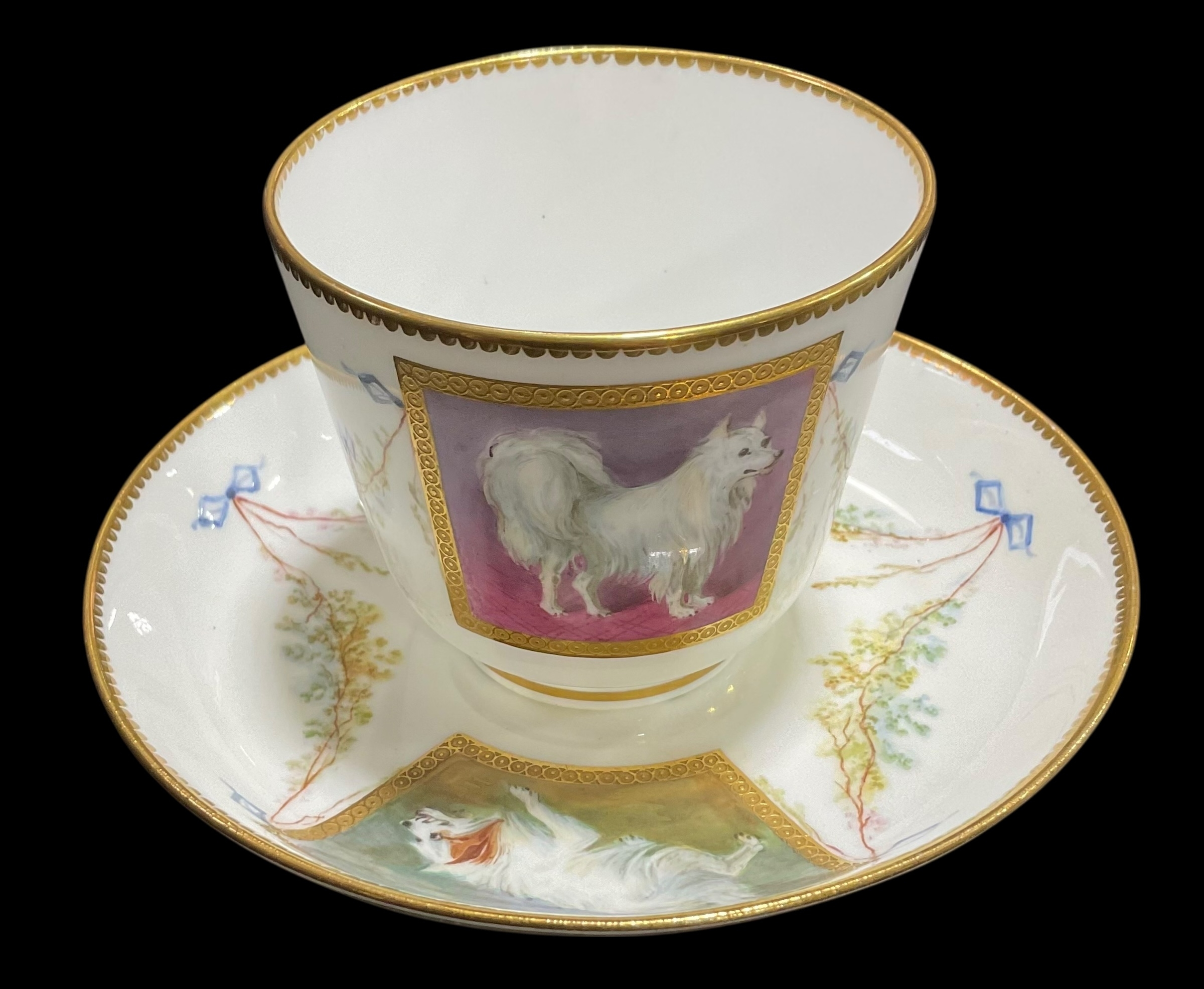 A Superb Mintons Hand Decorated Cabinet Cup Depicting 2 Dogs with Floral Swags.