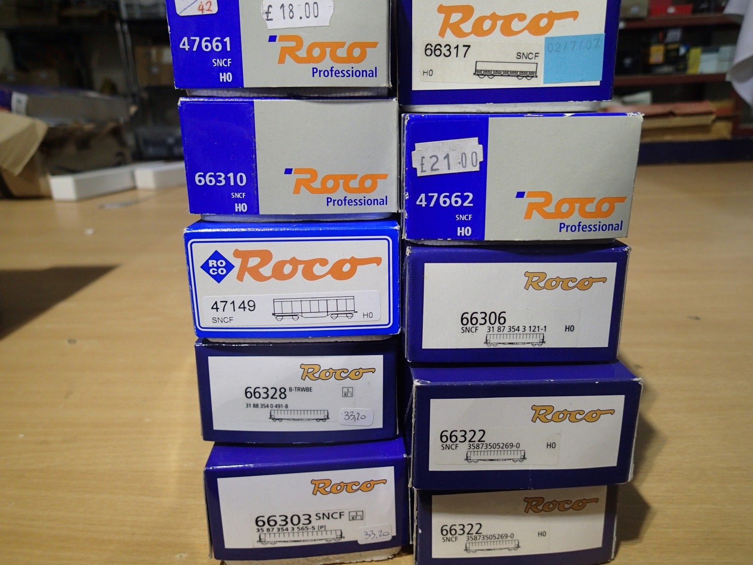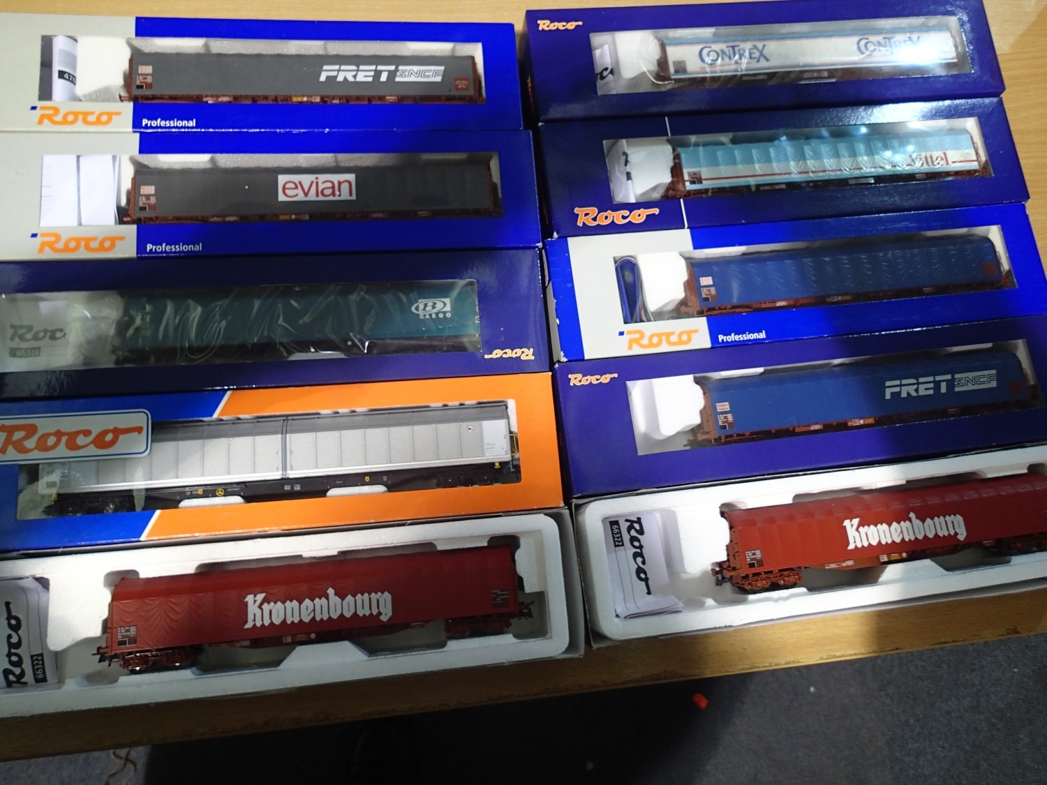 Ho scale Roco ten assorted bogie wagons, mostly excellent condition, boxed. UK P&P Group 2 (£24+VAT for the first lot and £5+VAT for subsequent lots)