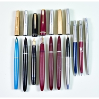 A Small Quantity of Ink Pens and Pencils in Display Box, comprising - a Pelikan "K200" ballpoint pen, in black resin with gold metal detailing, a Sheaffer fountain pen, in chrome casing with 14k nib, four Graf Von Faber-Castell "Magnum Brown" pencils and an ebonised Graf Von Faber-Castell pencil, with Lifomenz Co. two tier pen display box