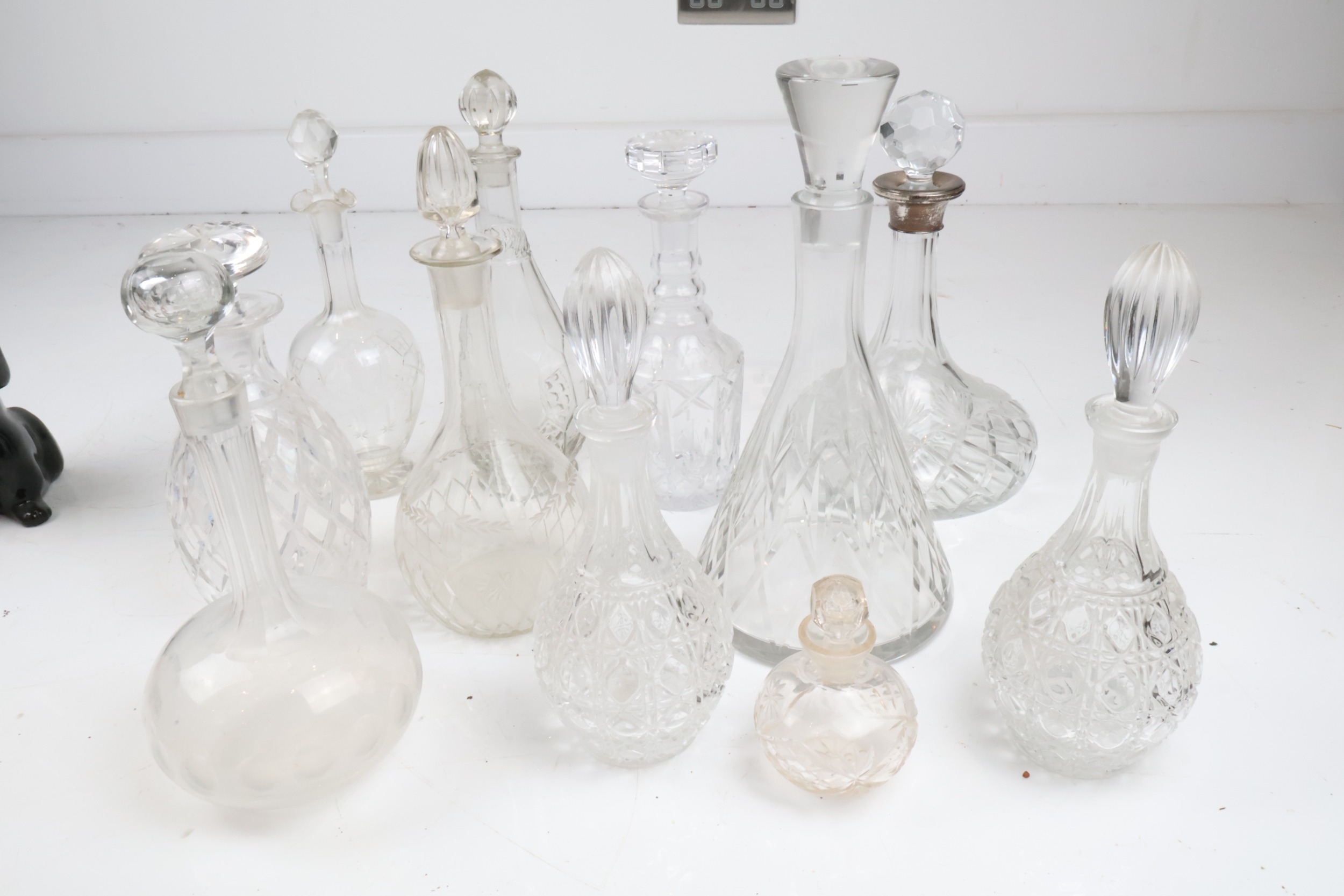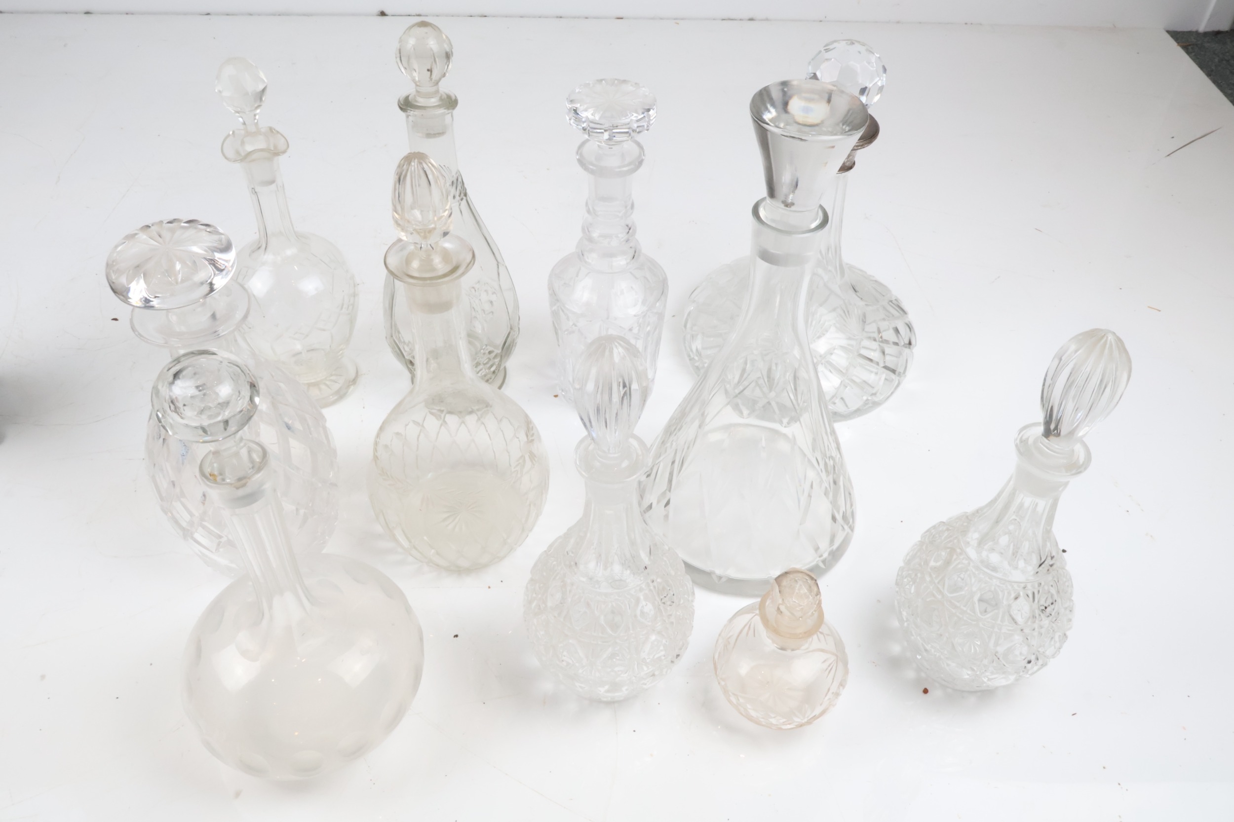 Large Collection of Cut Glass Decanters incl. Silver-Mounted Example (Qty 12)