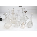 A a very good collection of twelve cut and moulded glass decanters, various shapes and patterns, several with original stoppers, including: