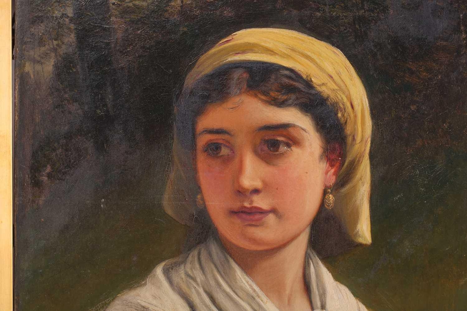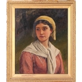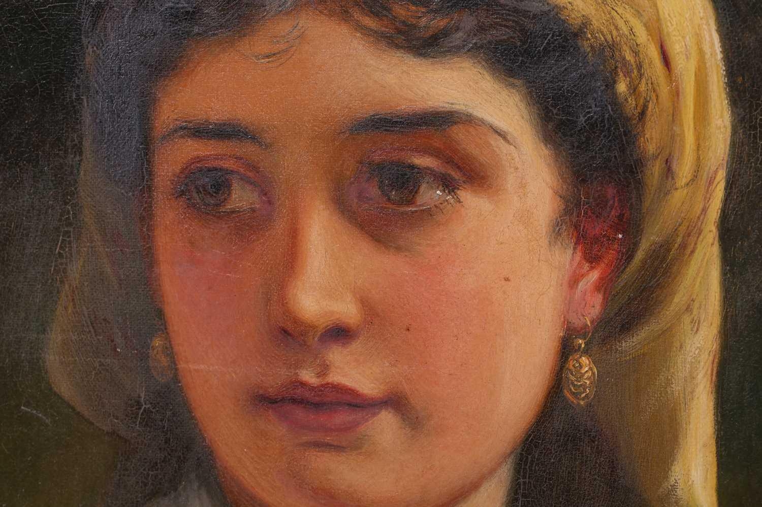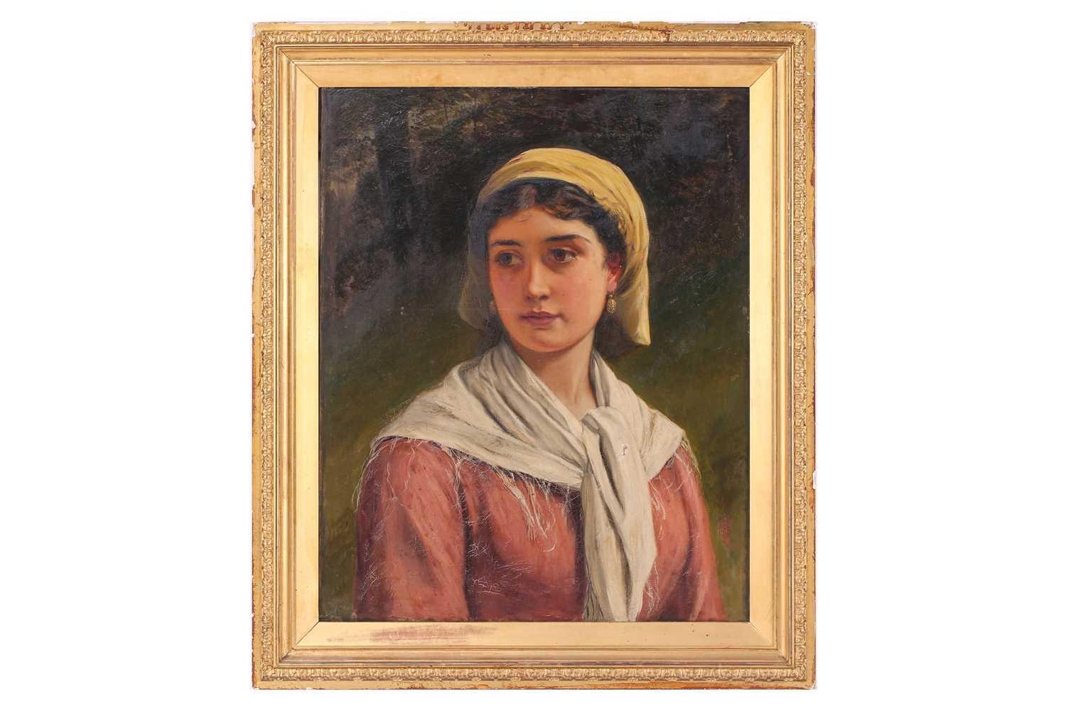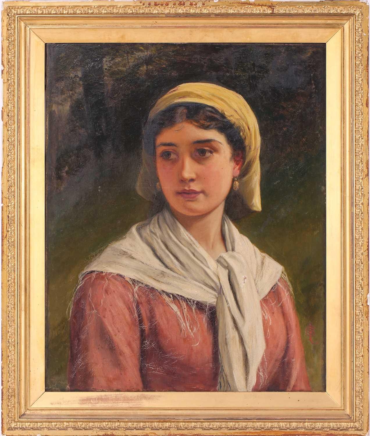 Charles Sillem Lidderdale (1831 - 1895), portrait of a lady wearing a white scarf, monogrammed, oil on canvas, 53 x 43 cm, framed 65 x 55 cm