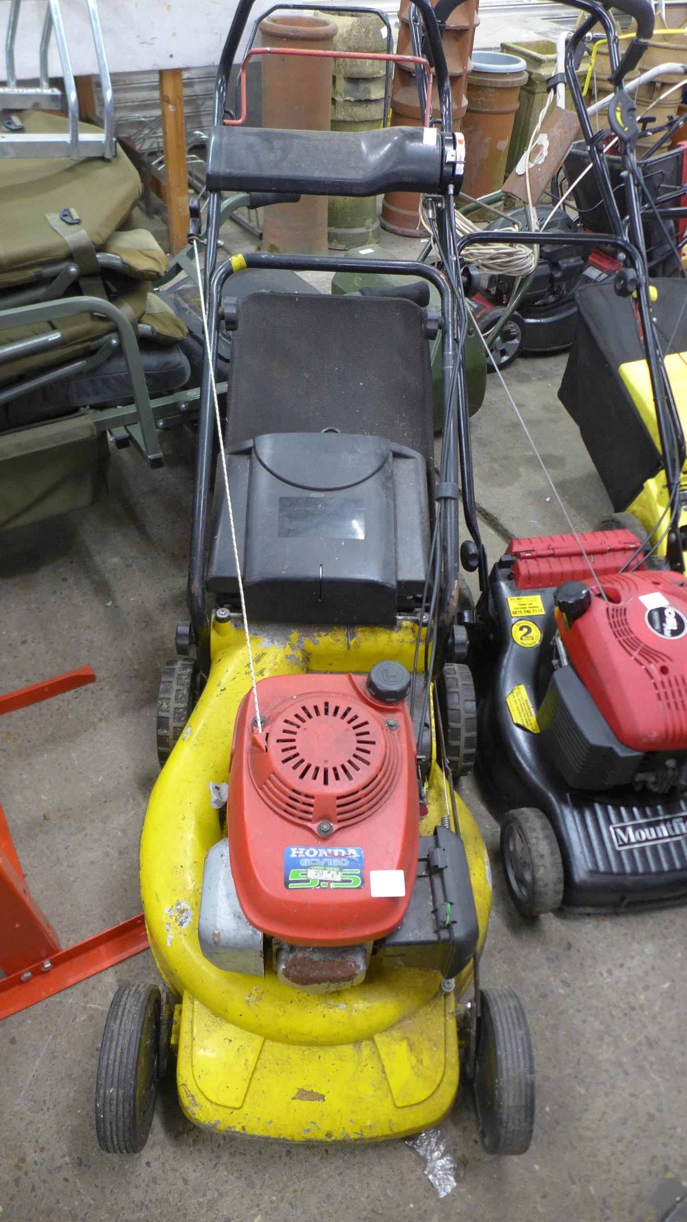 A Honda GCVi60 petrol self propelled lawn mower