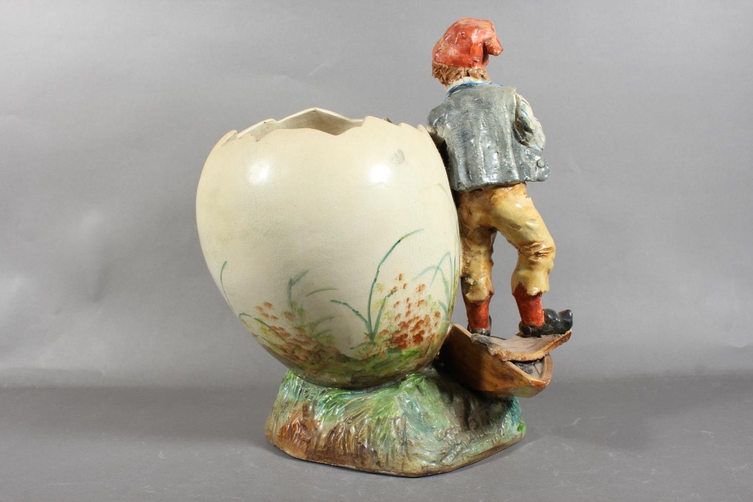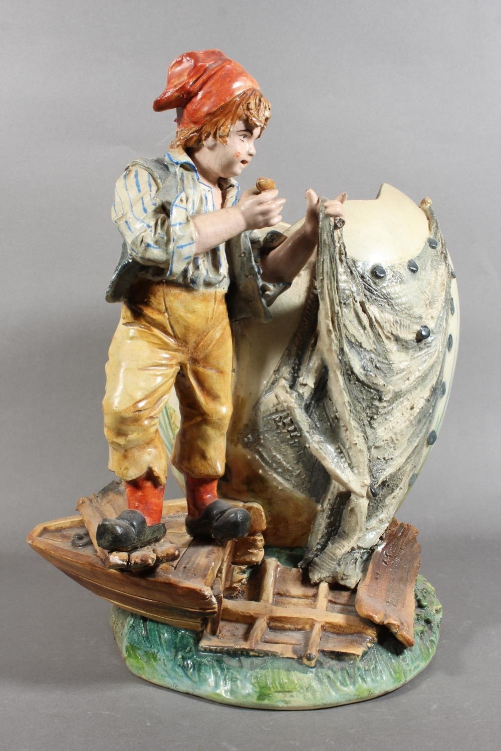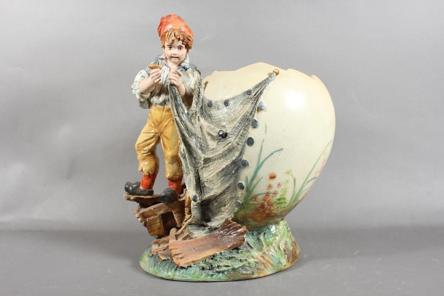 Pottery vase depicting a boy in vintage dress.