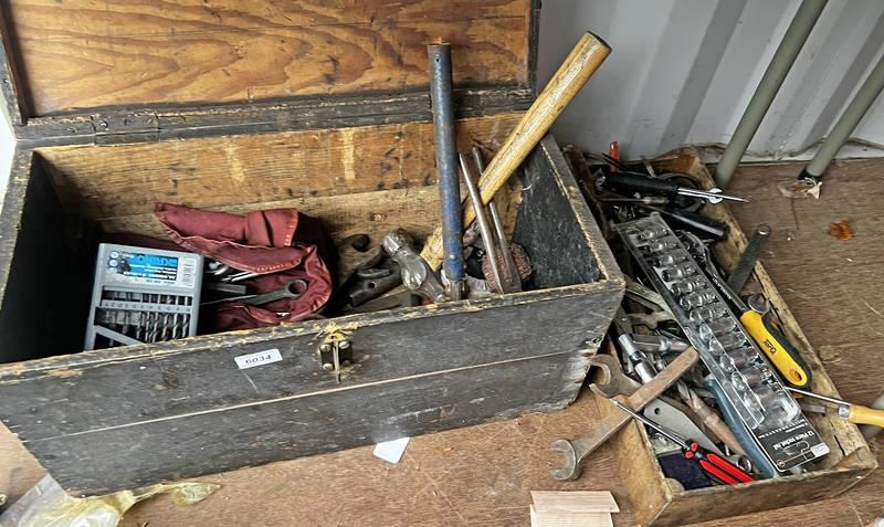 VINTAGE WOODEN JOINERS TOOL BOX WITH CONTENTS OF VARIOUS TOOLS