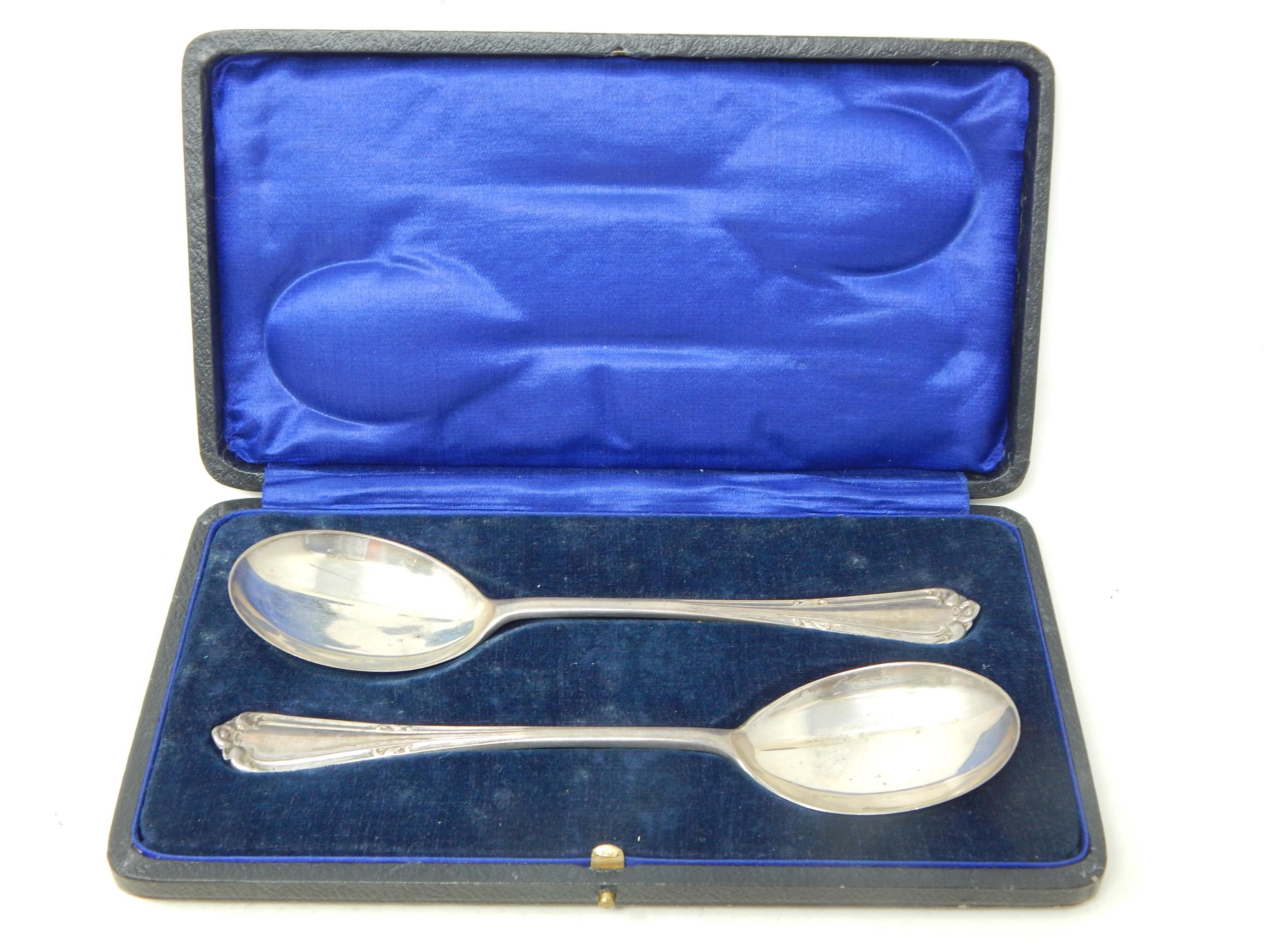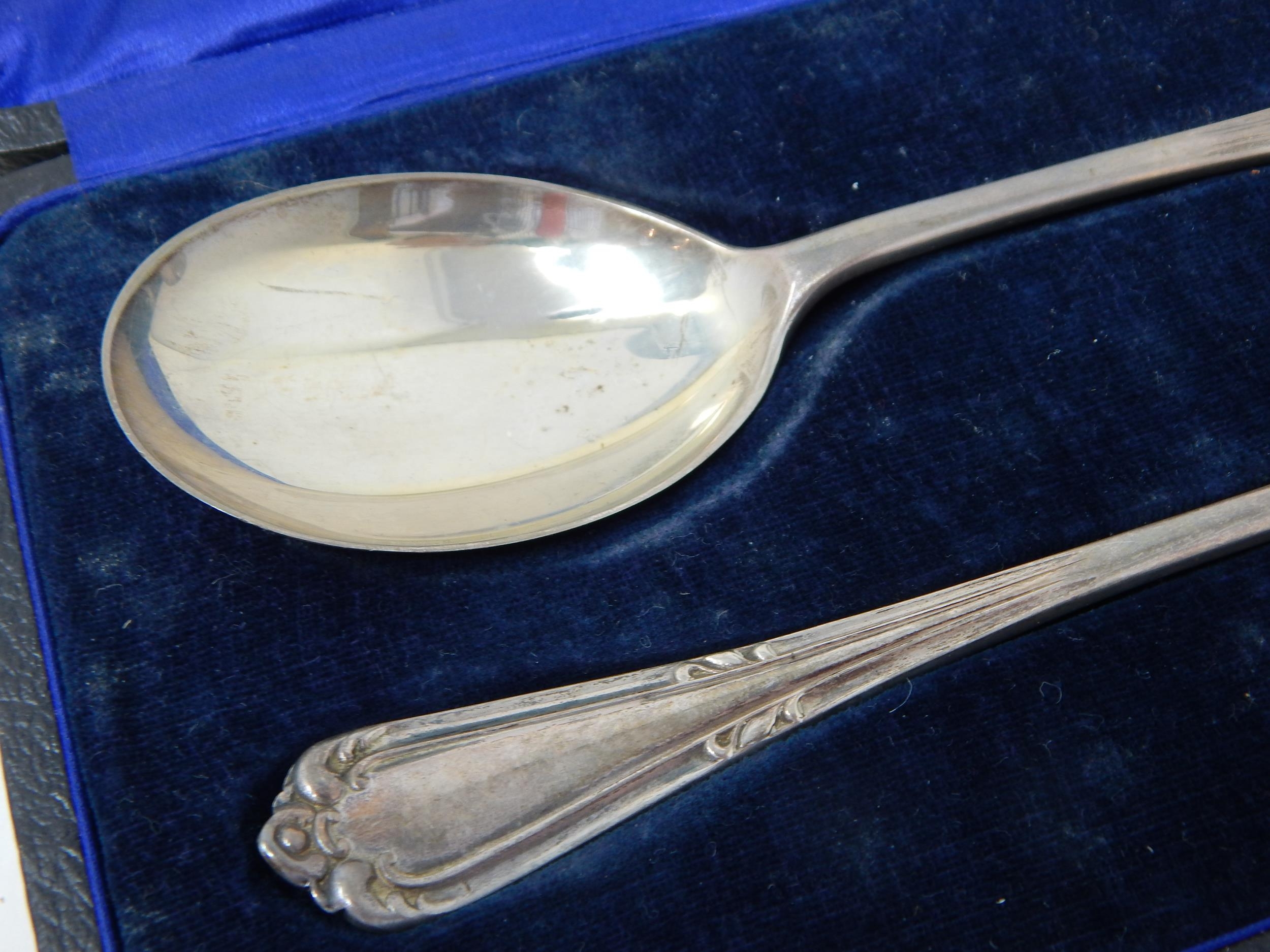 Pair of Silver Serving Spoons Hallmarked London 1918 by David Fullerton in Original Fitted Case.