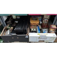 2 Boxes containing assorted trinket boxes including a 'seashell' box