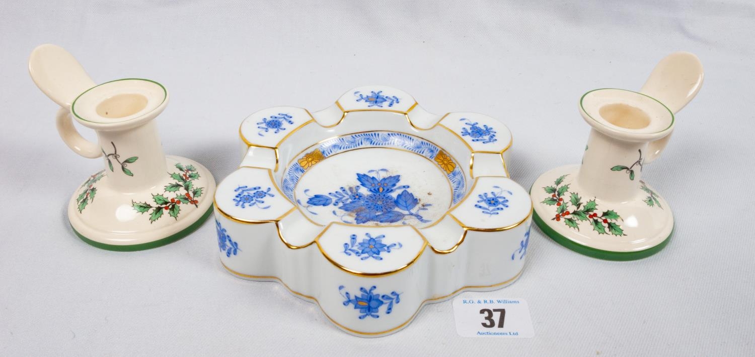 HEREND ASHTRAY & SPODE CANDLESTICKS