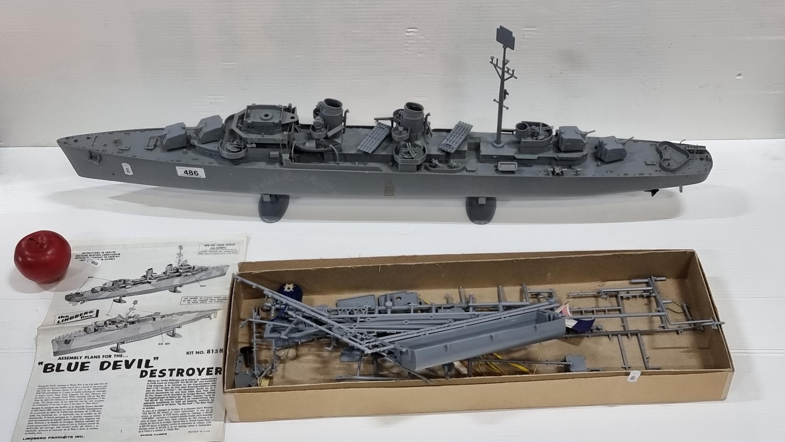 A model vessel of the "Blue Devil Destroyer", (Kit Number 815m), by Lindberg Products Inc. Accompanied by original instructions, largely constructed. A highly detailed model, great for display.