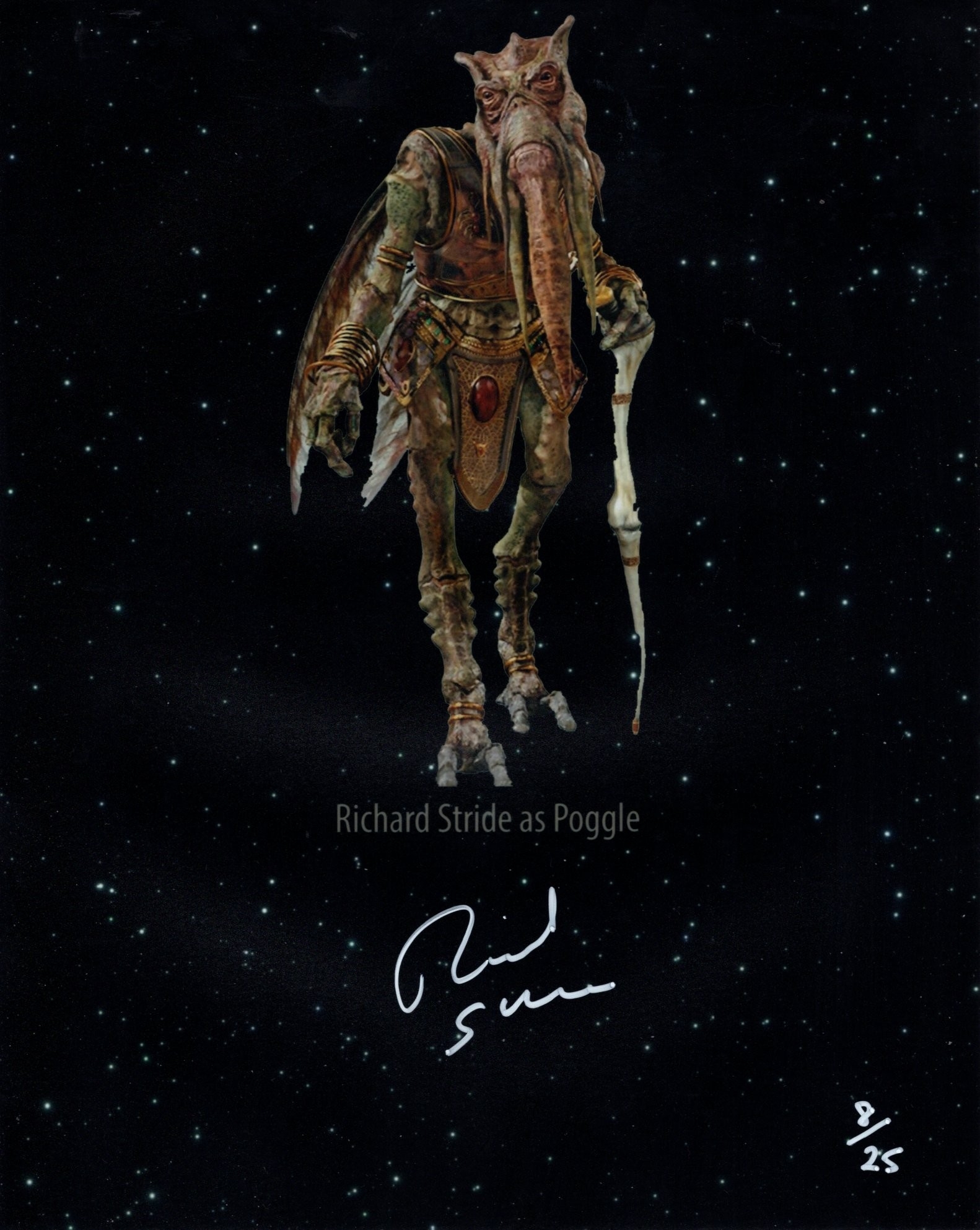 Star Wars Limited Edition movie characters series colour 8x10 photo signed by actor Richard Stride as Poggle