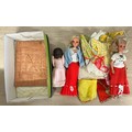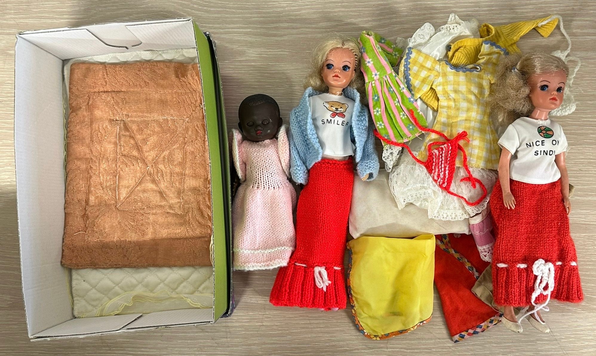 Two vintage Sindy dolls with some clothing together with a small Pedigree doll.