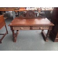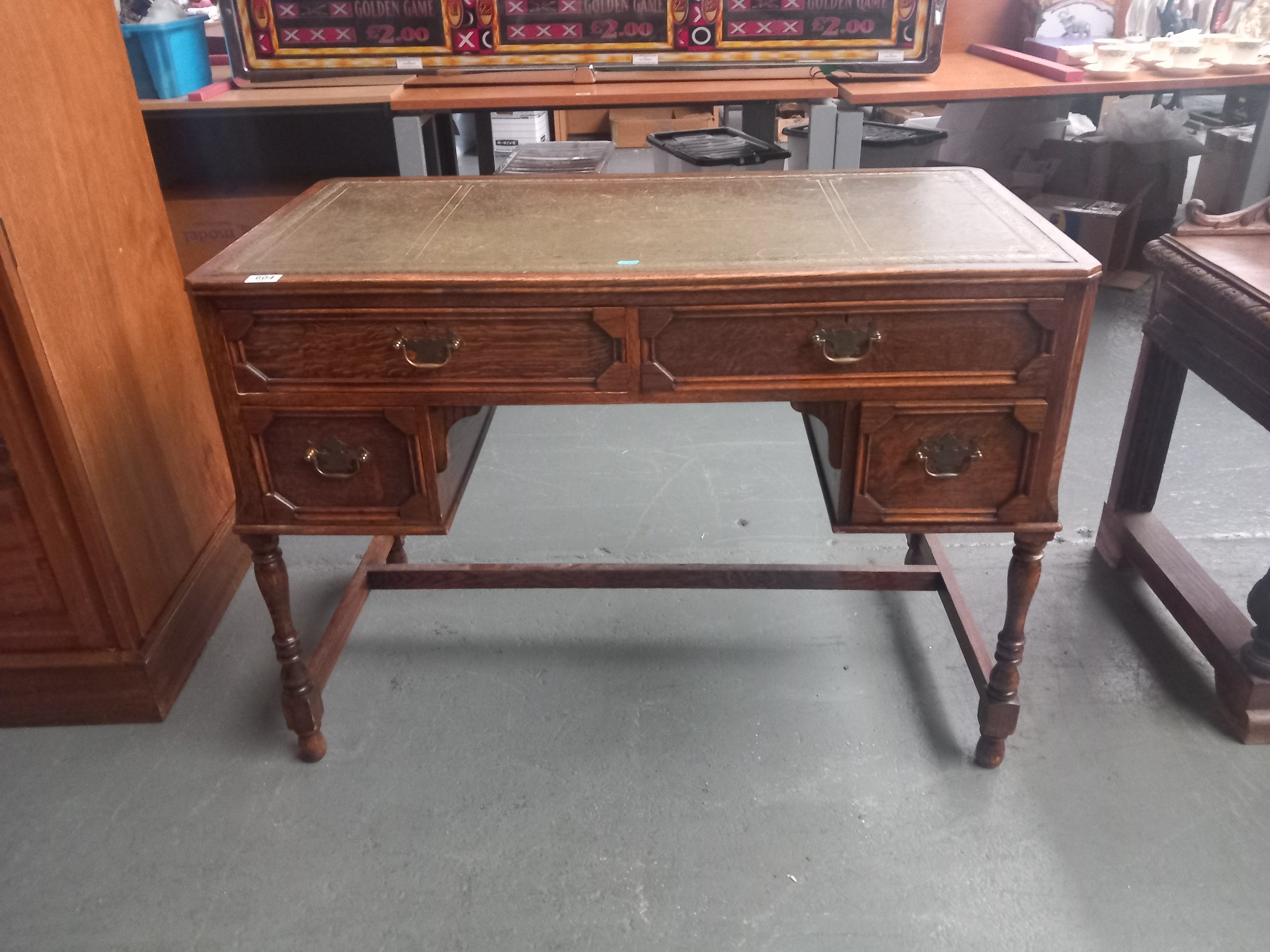 An oak writing desk with green leatherette insert H76cm W108cm D56cm