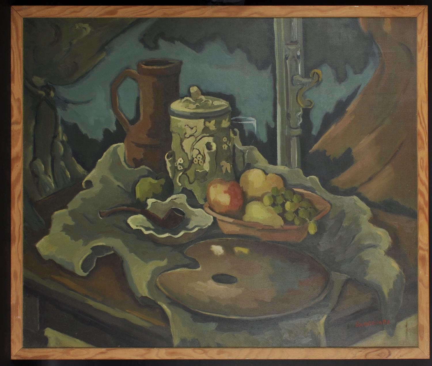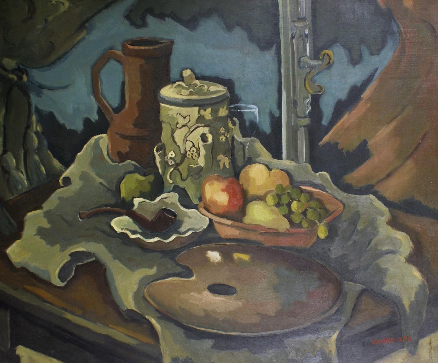 Sangouard (20th Century) French. Still Life on a Table, Oil on Canvas, Signed, 31.5 x 39.5” (80 x 100cm)