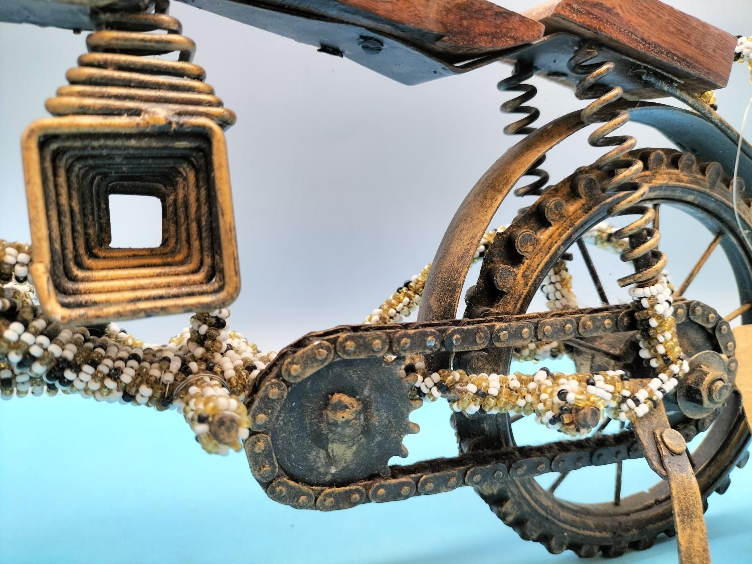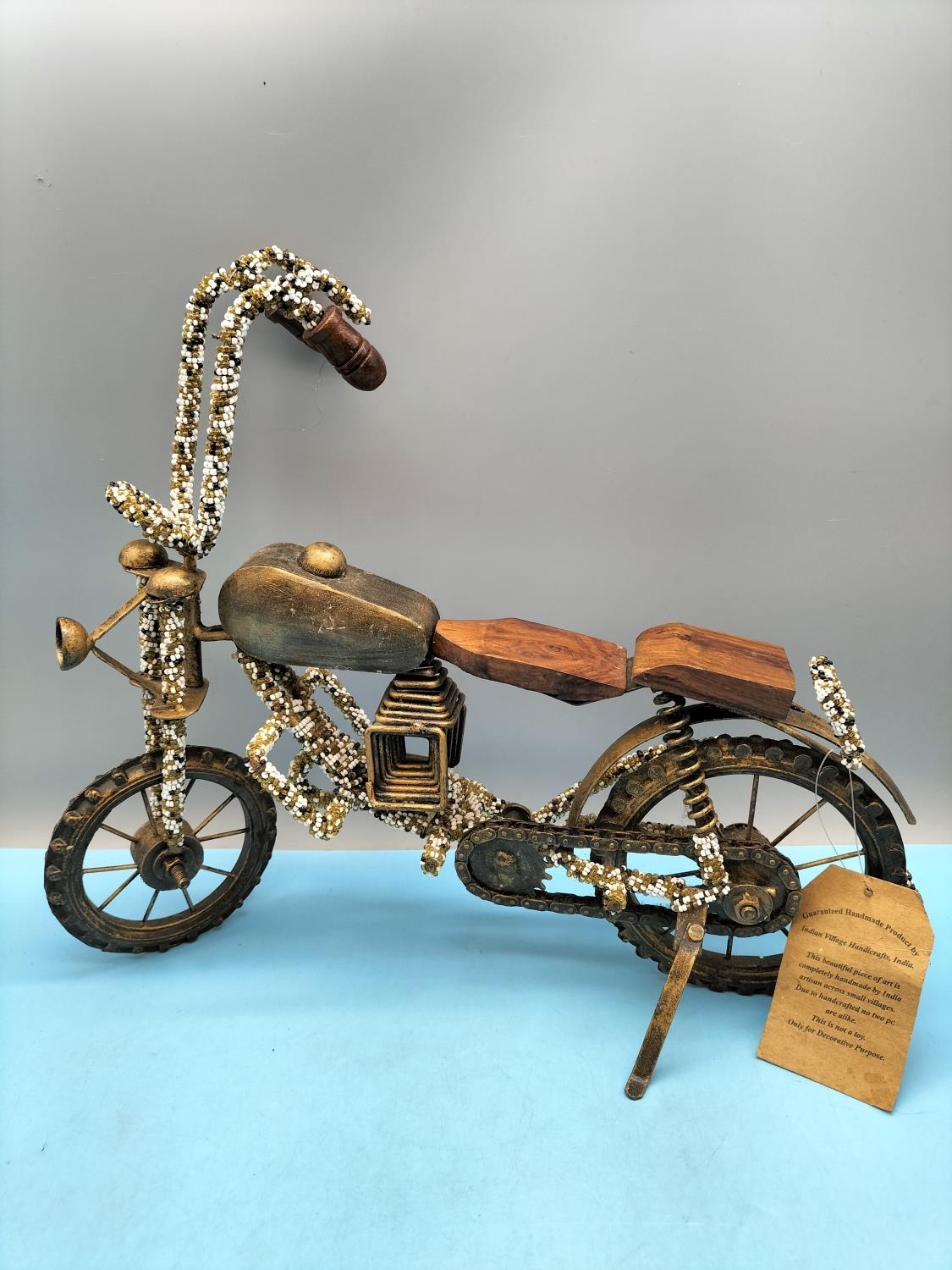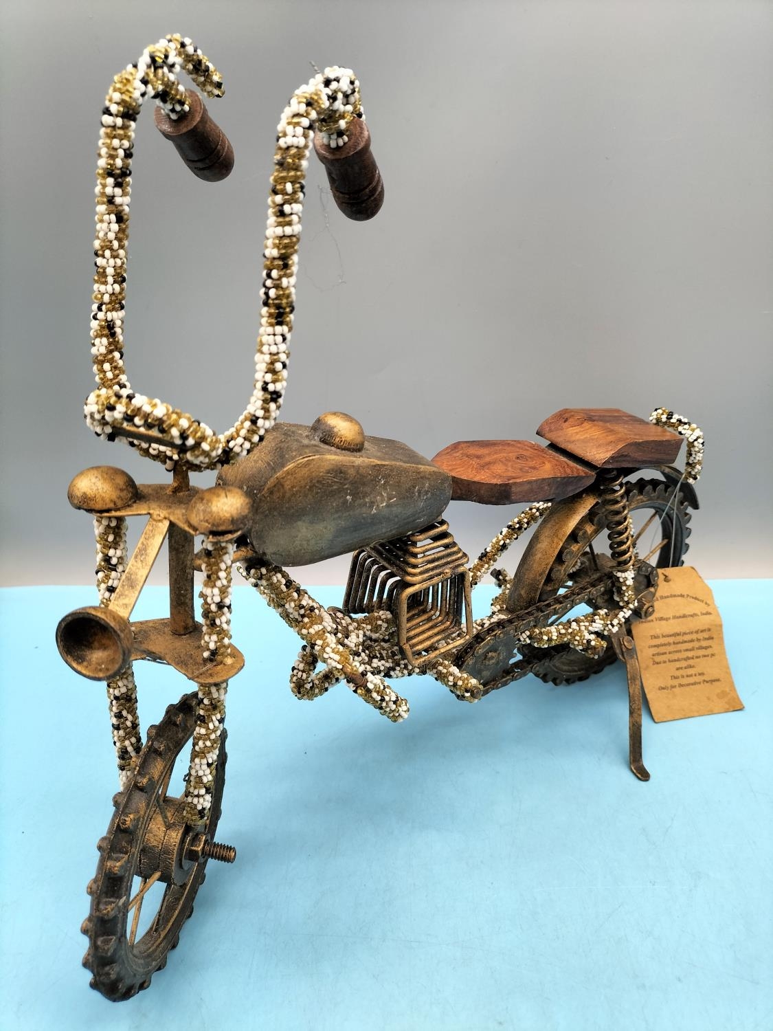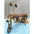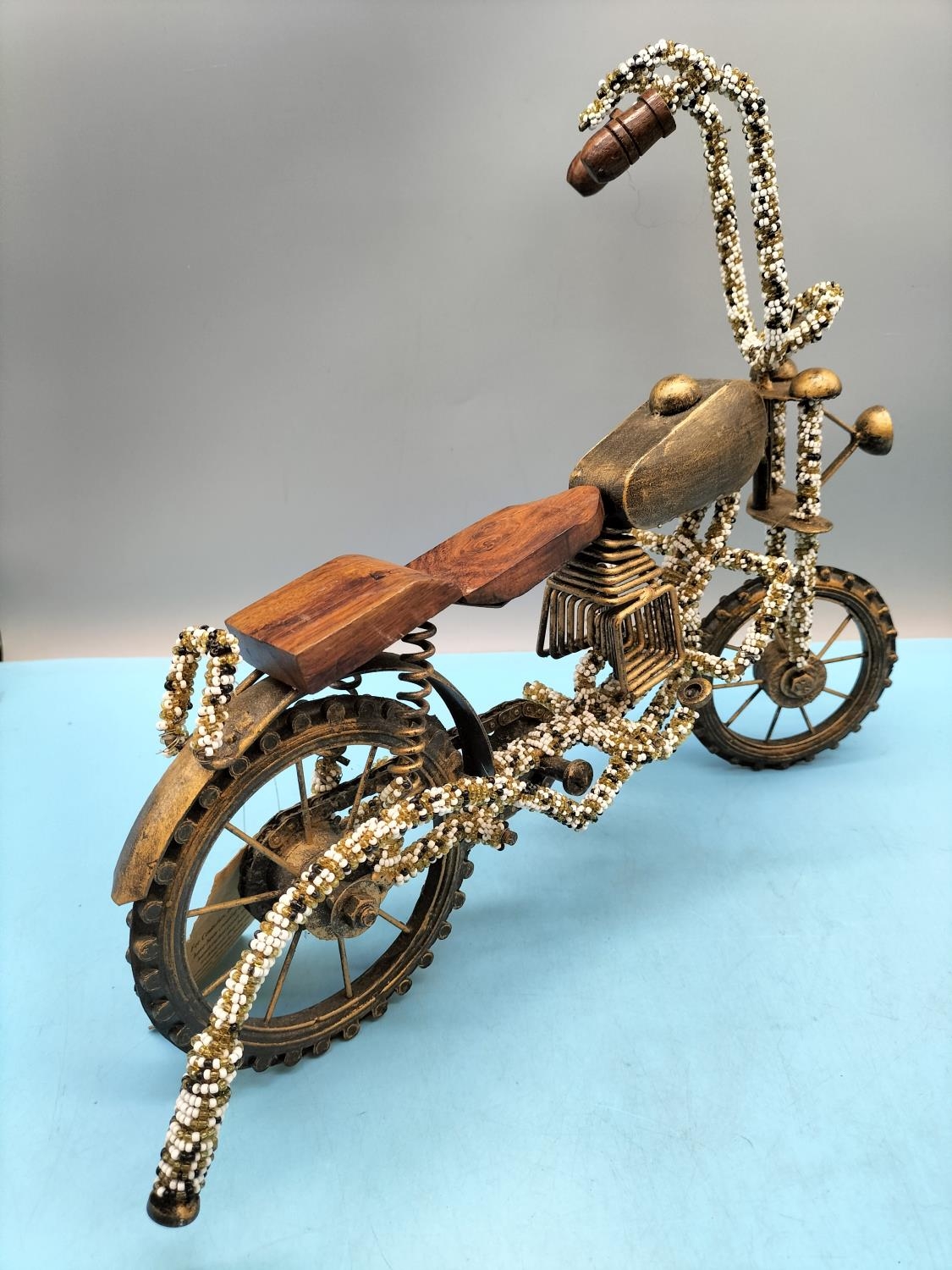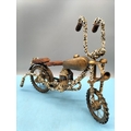 Large Hand Crafted Wood and Cast Metal Model of a Motorbike. 32cm High x 41cm