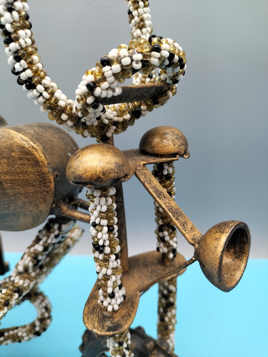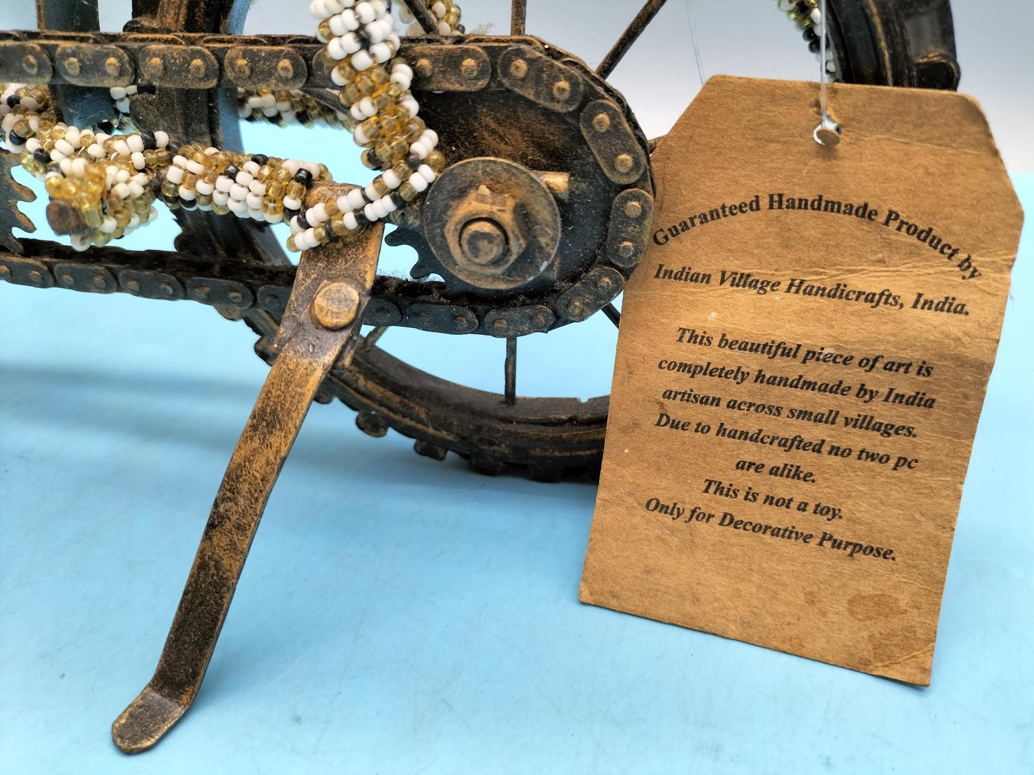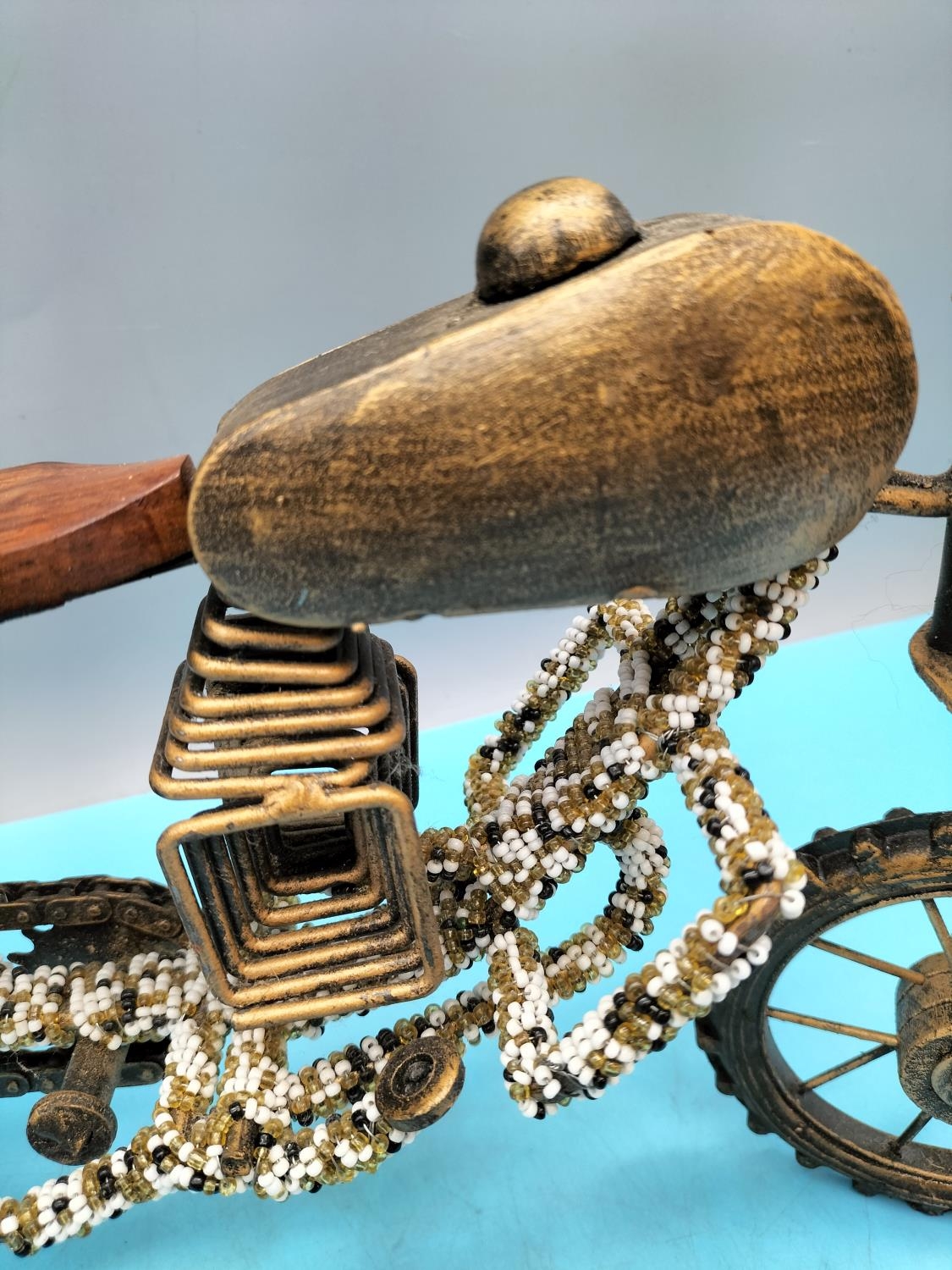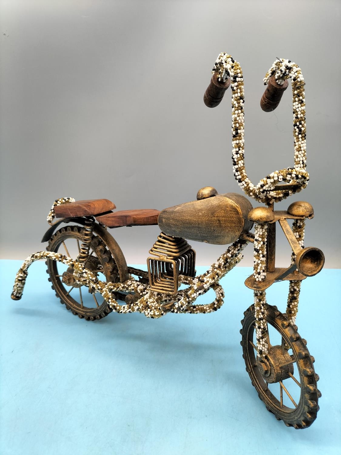 Large Hand Crafted Wood and Cast Metal Model of a Motorbike. 32cm High x 41cm