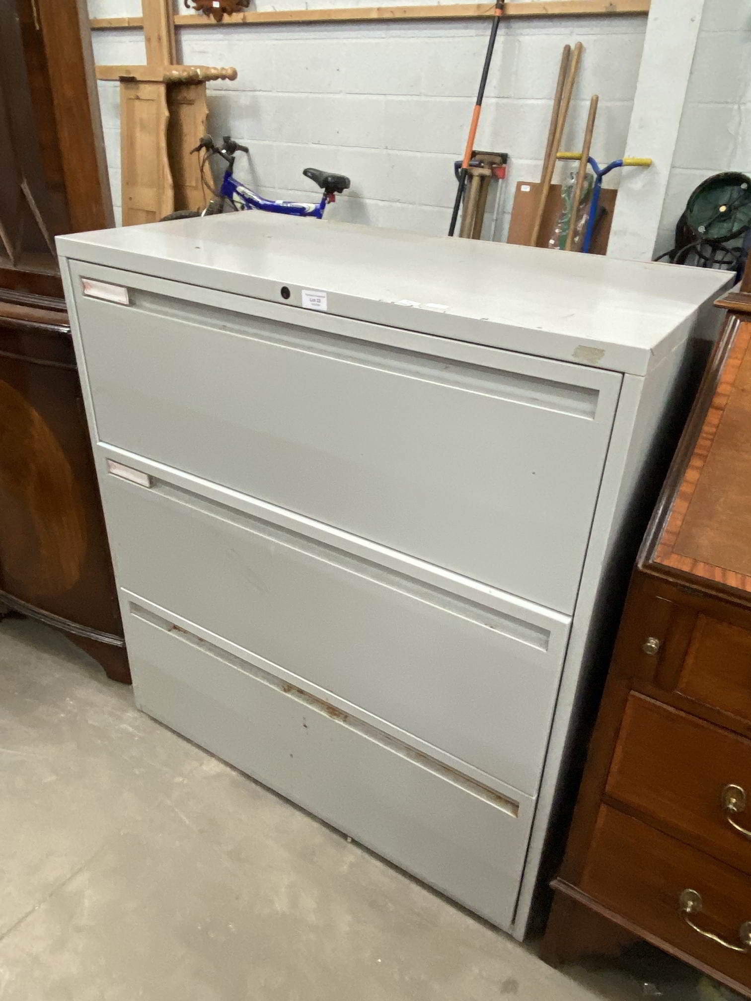 Metal three drawer filing cabinet 100H 92W 46D