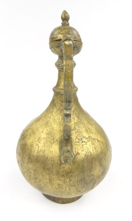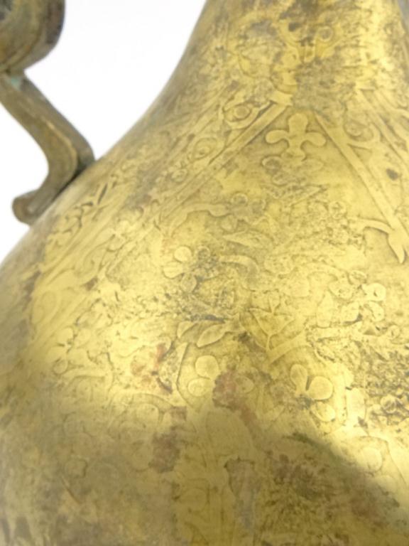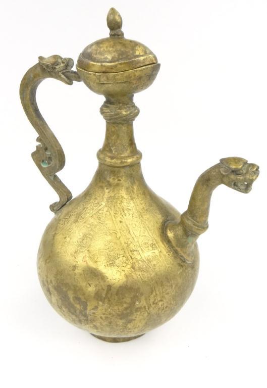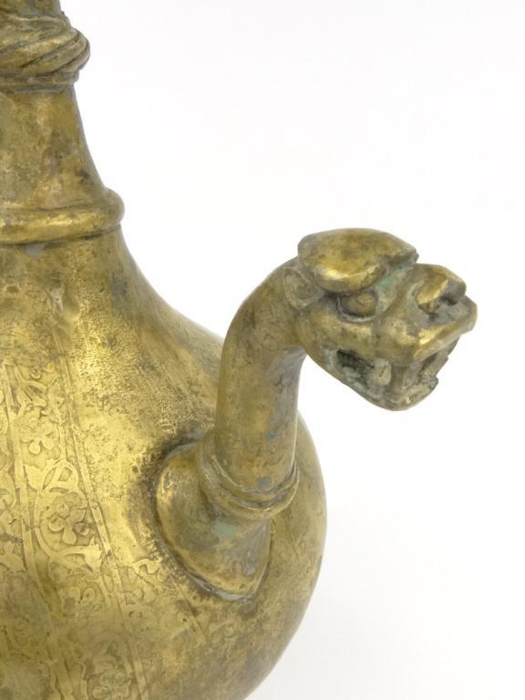 North Indian/Islamic bronze ewer with dragon's head handle and spout, with chased decoration to the bulbous body, 32cm high