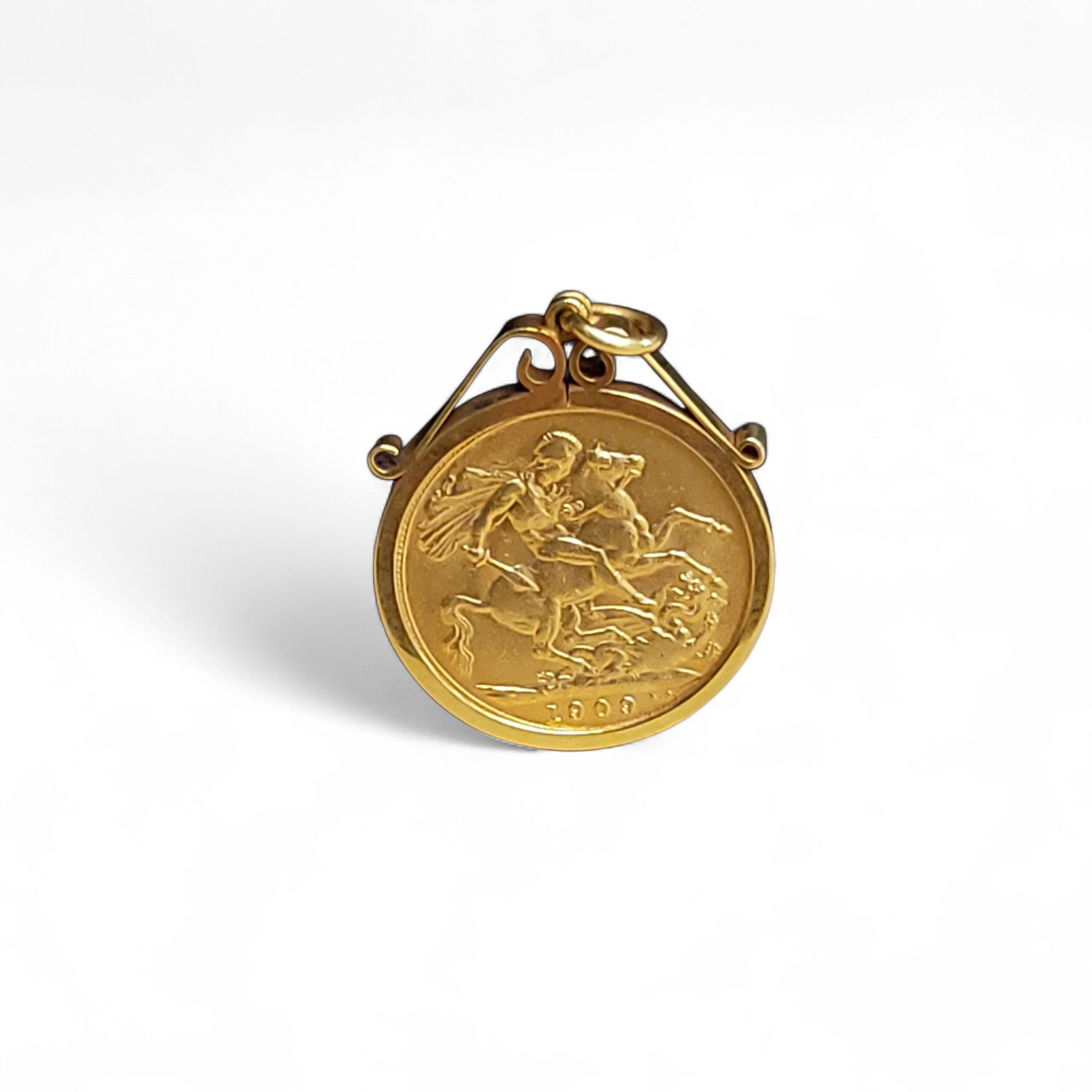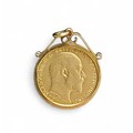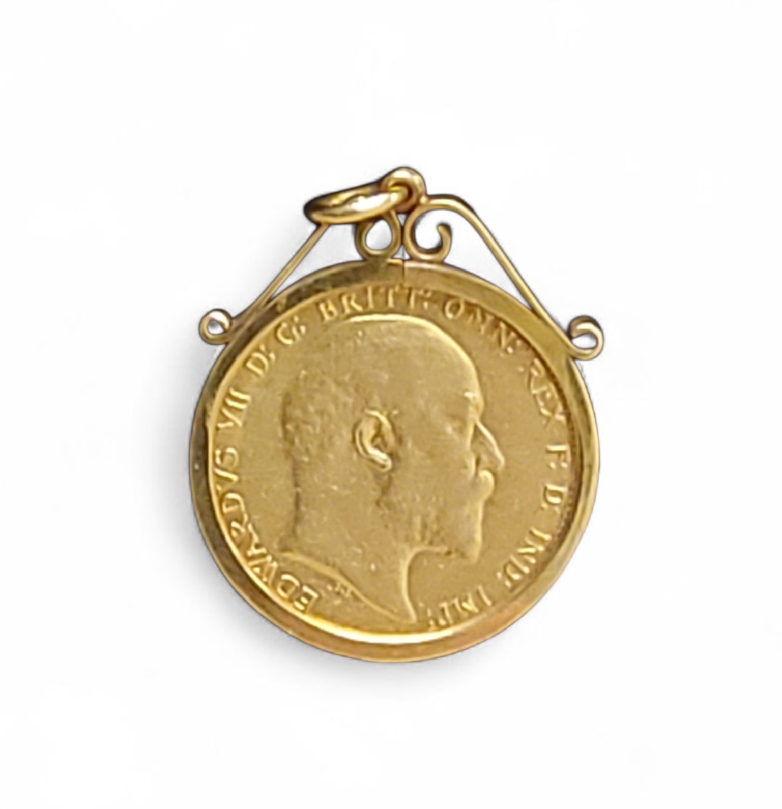 An Edwardian full sovereign, 1909, 9ct gold mount 10g gross