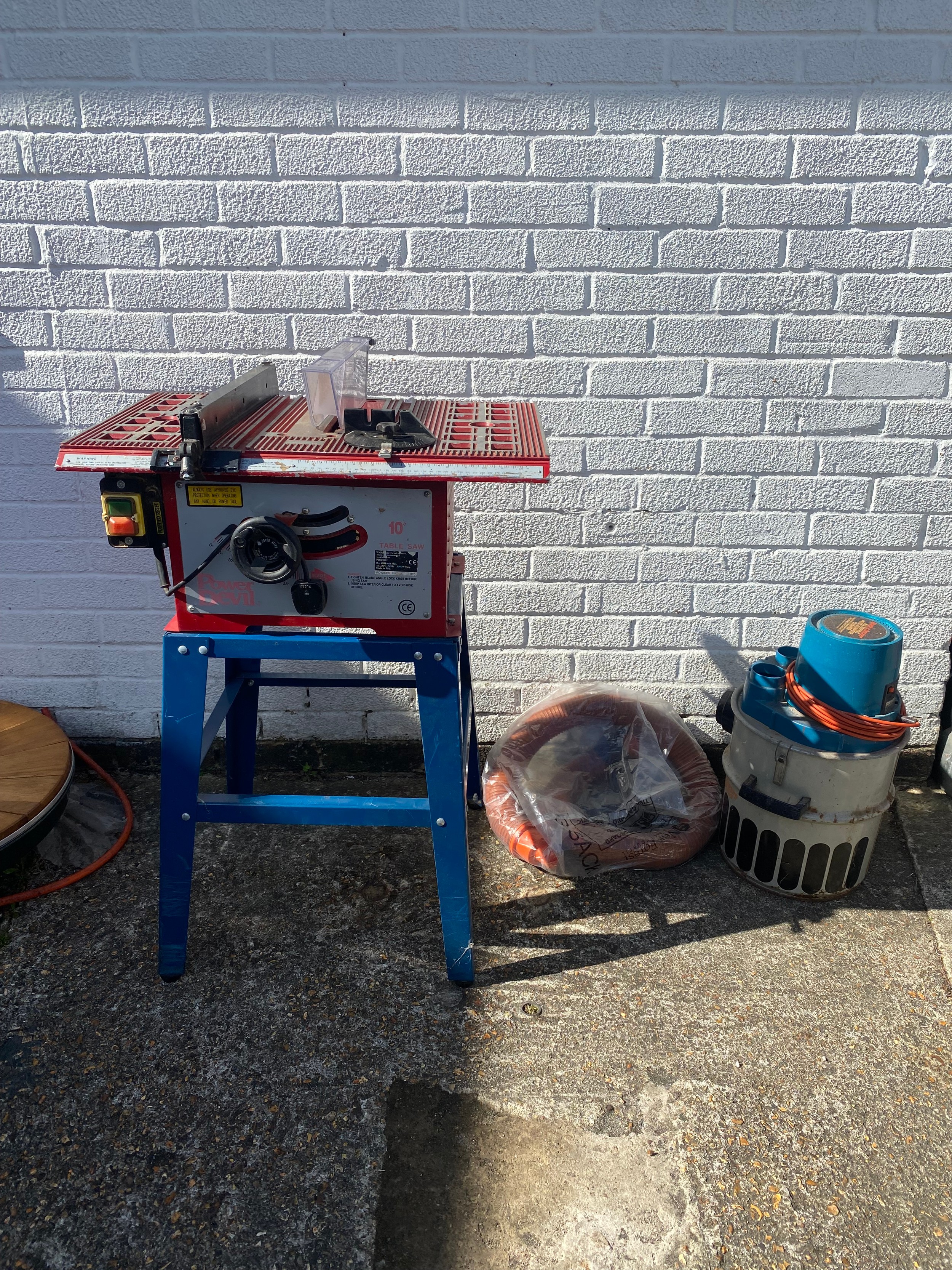 A Power Devil 10" table saw, together with a Black & Decker Major Vac multi purpose cleaner -