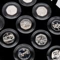twenty-nine uncirculated silver coins, in a box with certificates. Box 30.5cm by 20.5cm
