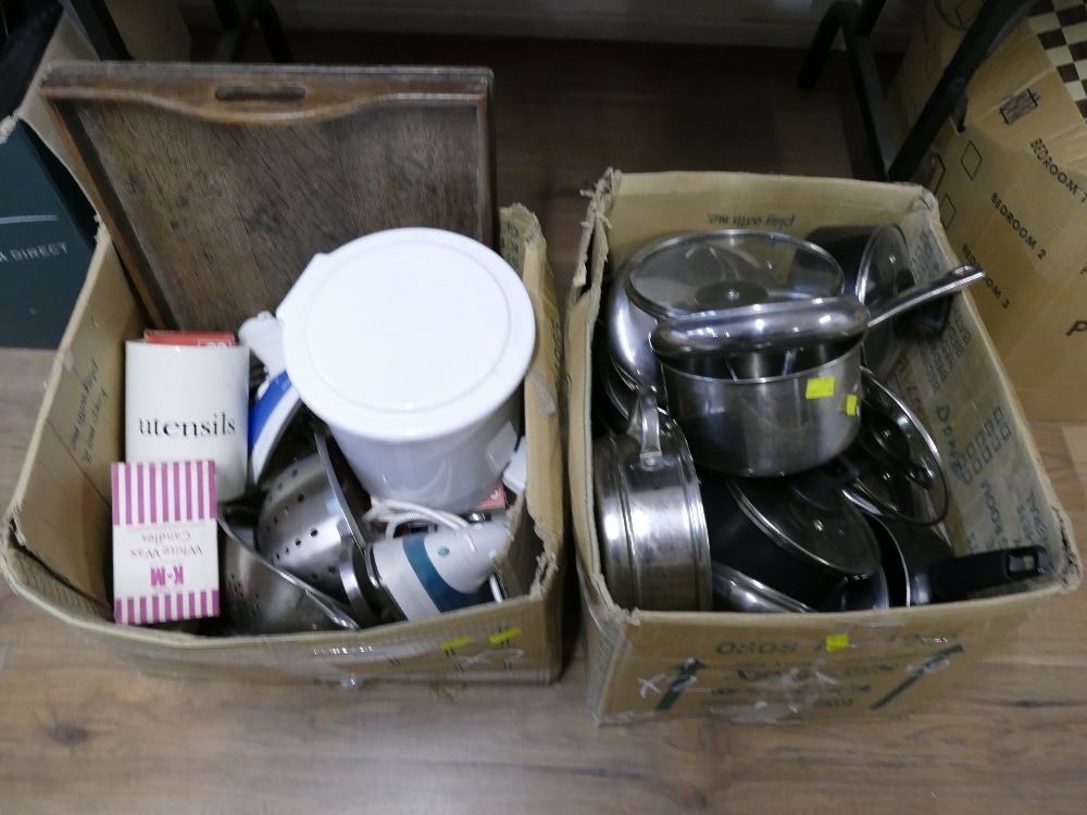 Boxes of kitchenware etc