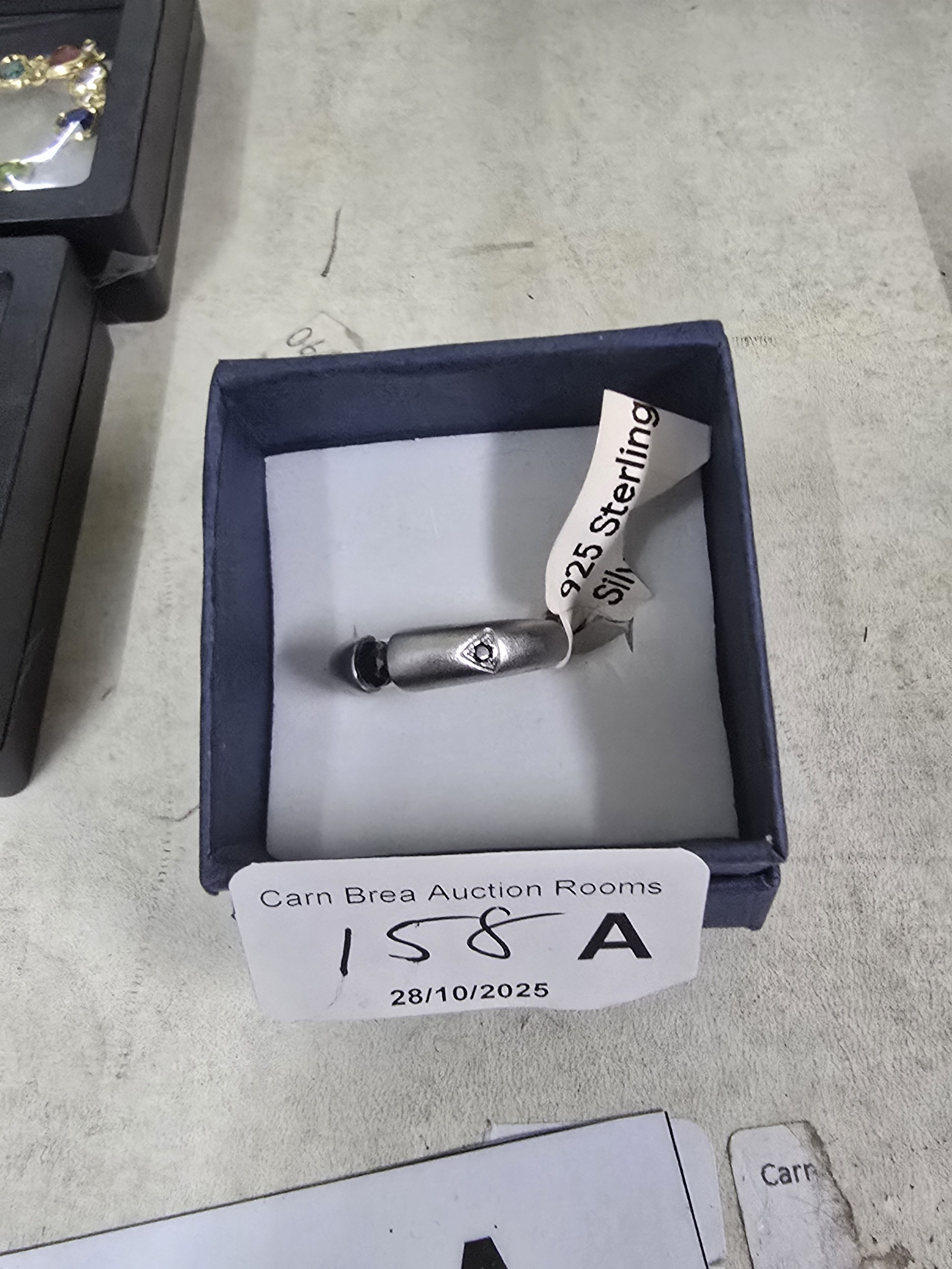 925 Silver (tested) CZ marked Satin Finish stone set Ring, size Q
