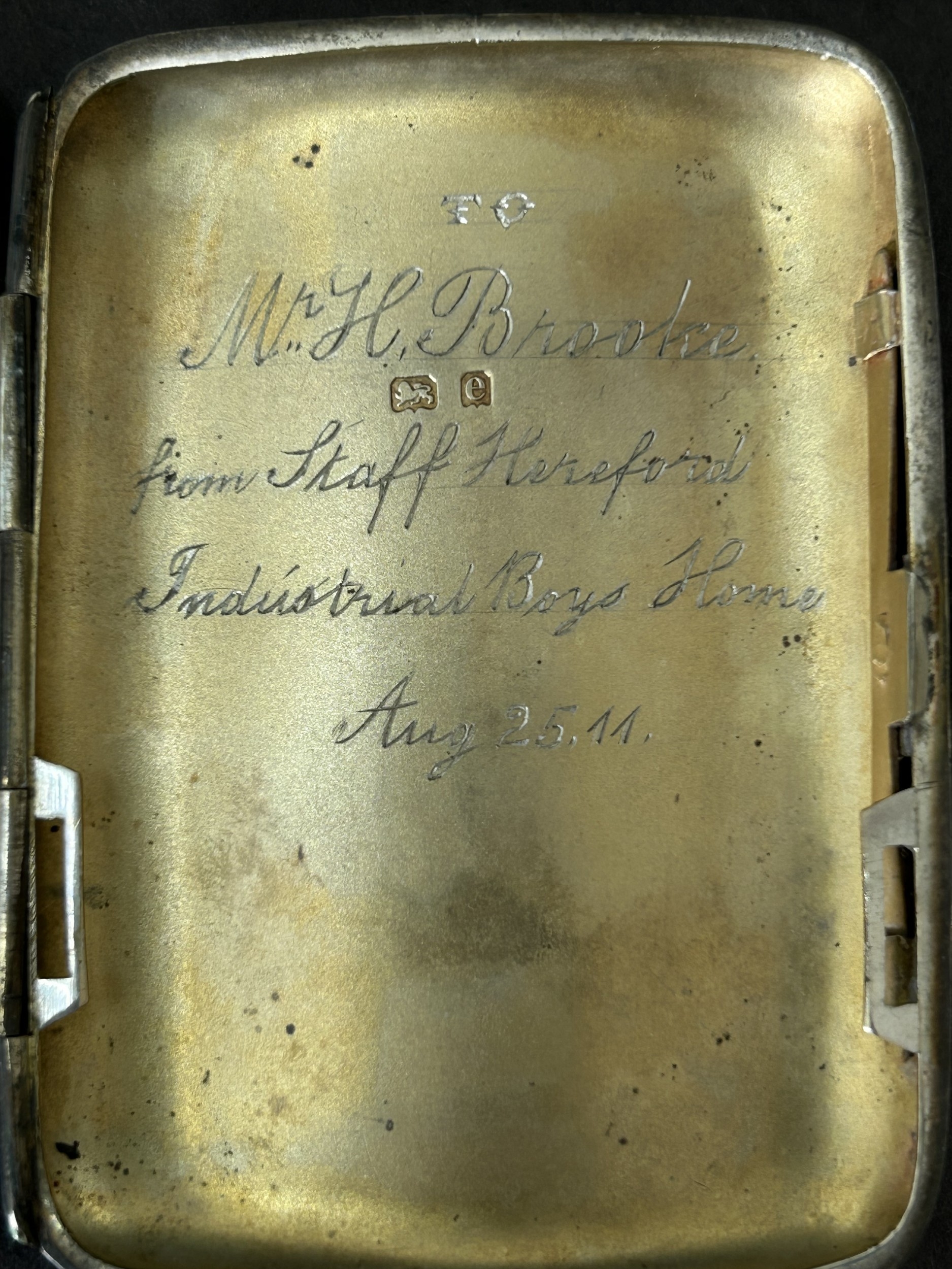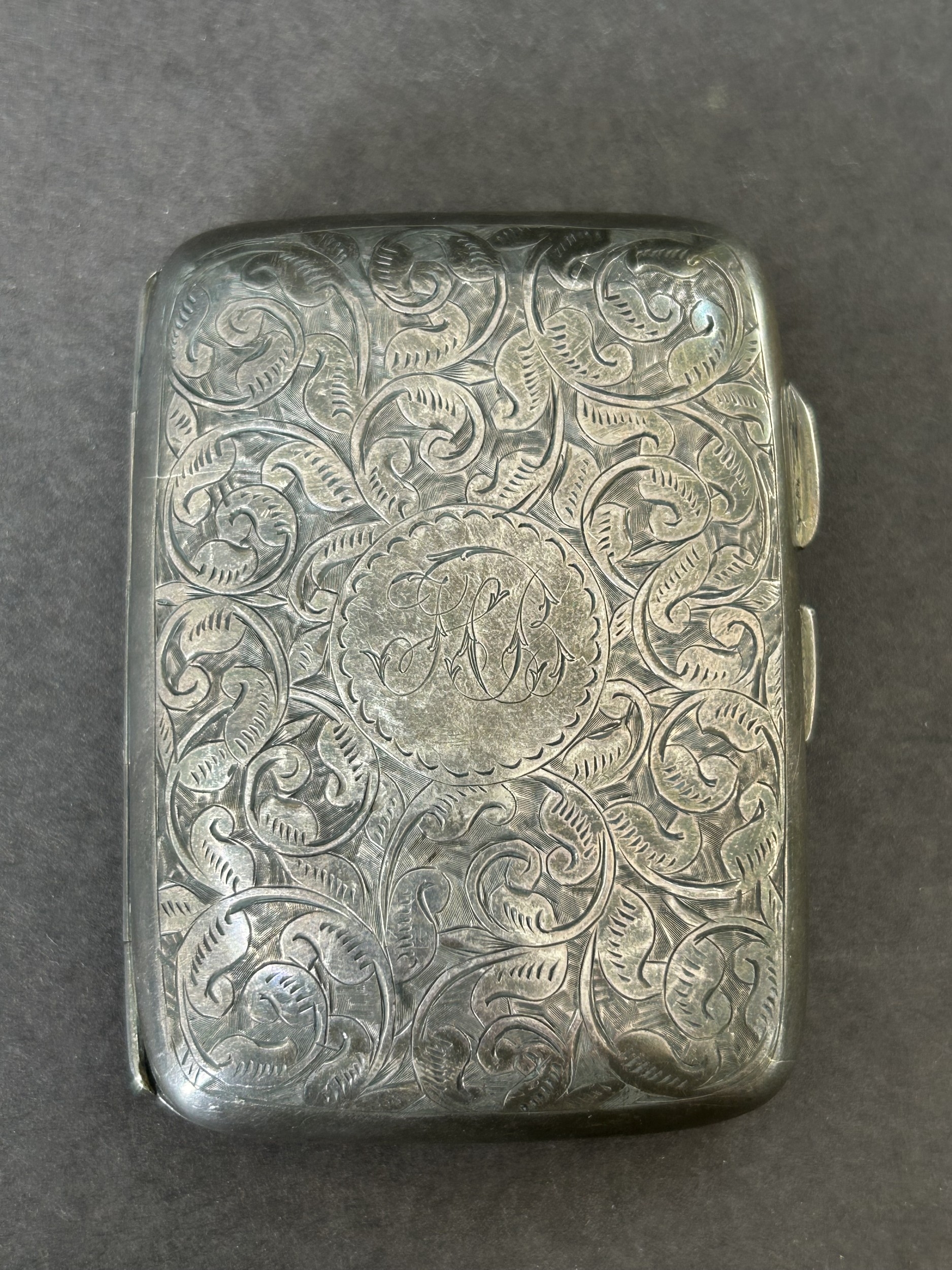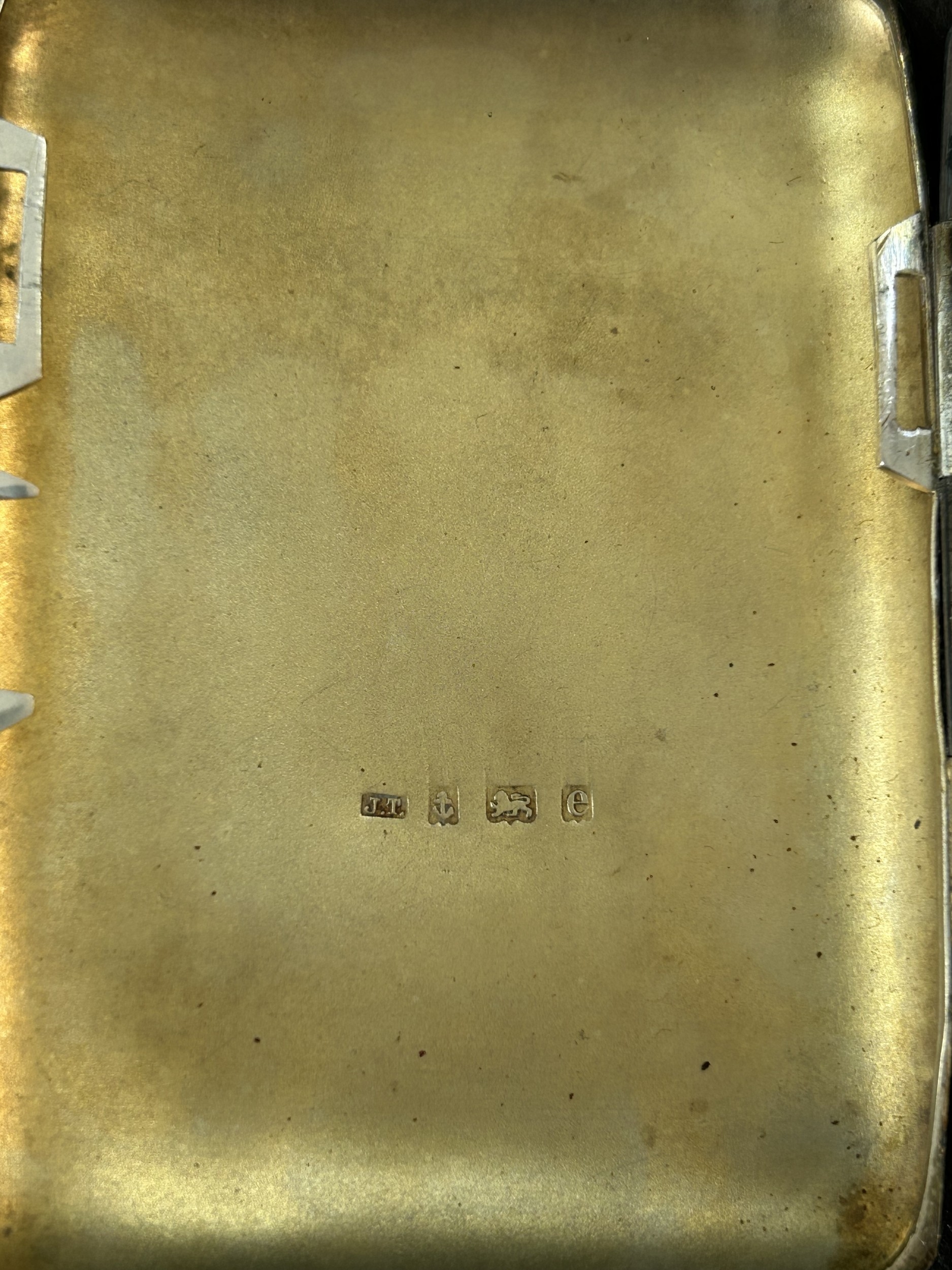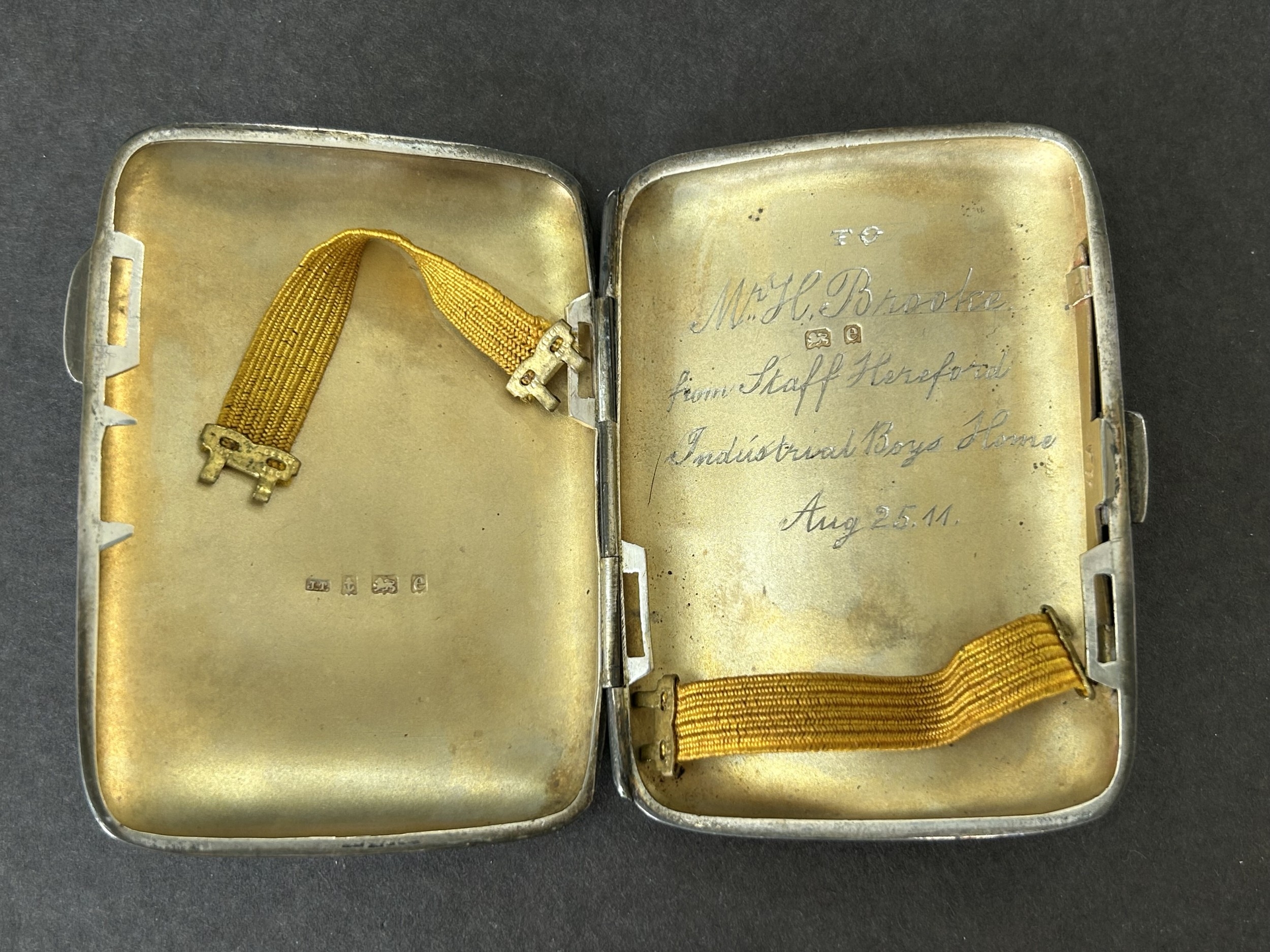A hallmarked silver small cigarette case with internal inscr...