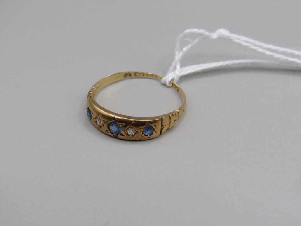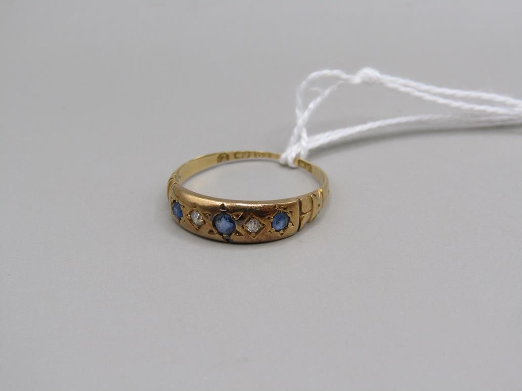 18CT GOLD DIAMOND SAPPHIRE SET RING SIZE P