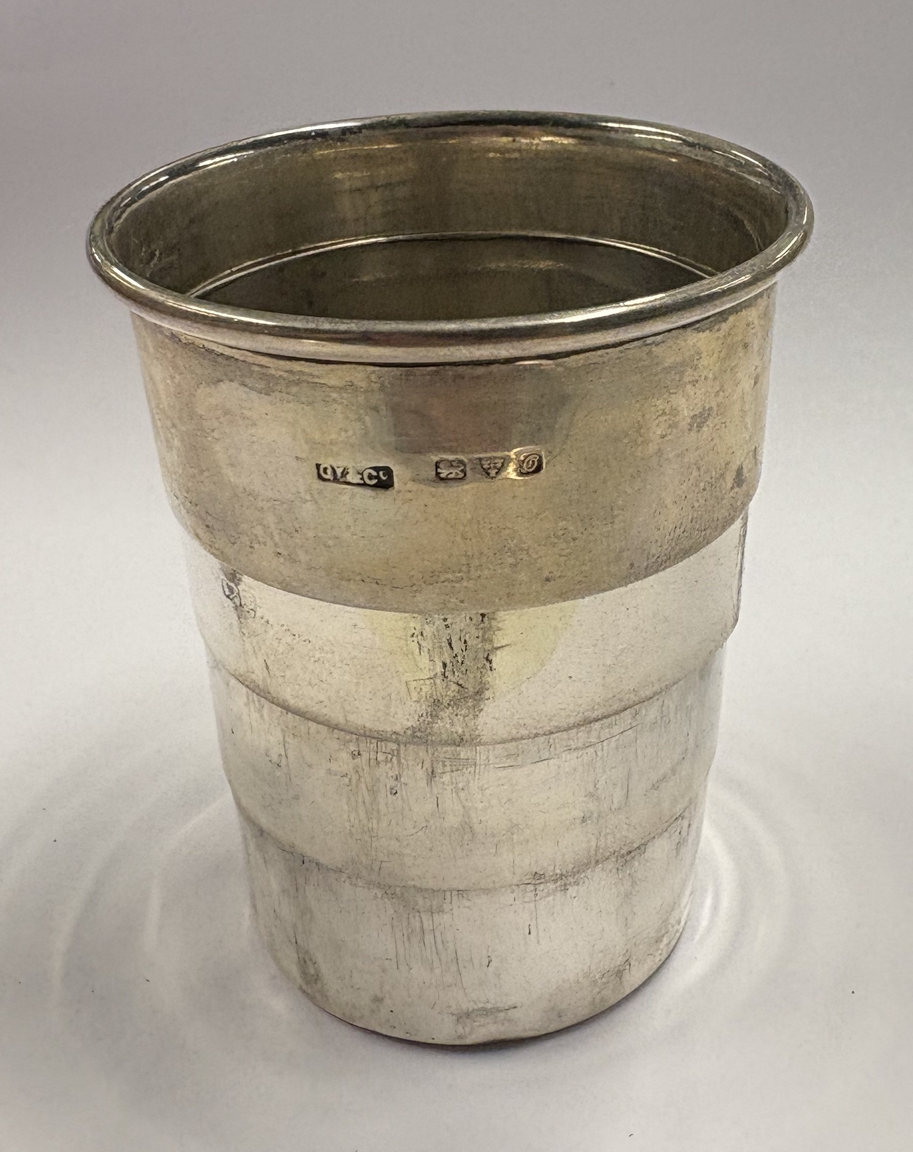 CHESTER: A collapsible silver beaker in case. 1914. By GY & Co. Approx. 66 grams. Est. £200 - £300.