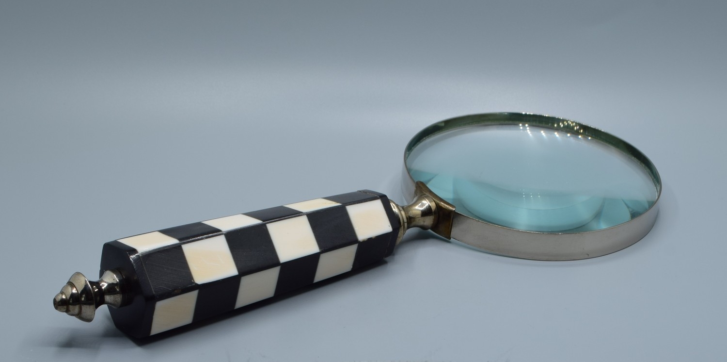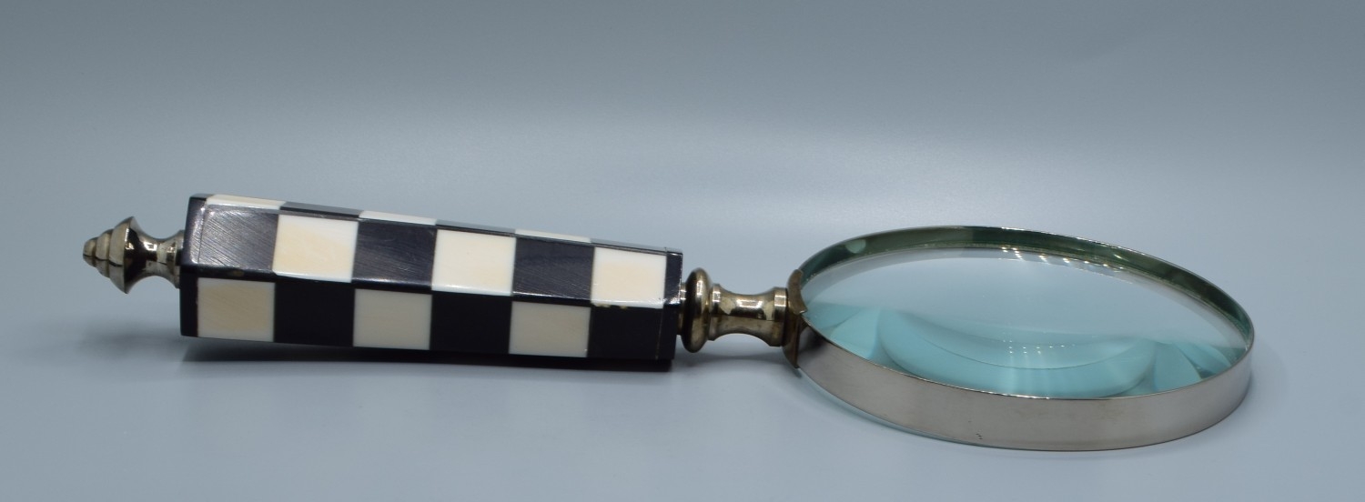 Large hand held Magnifying glass with checker handle
