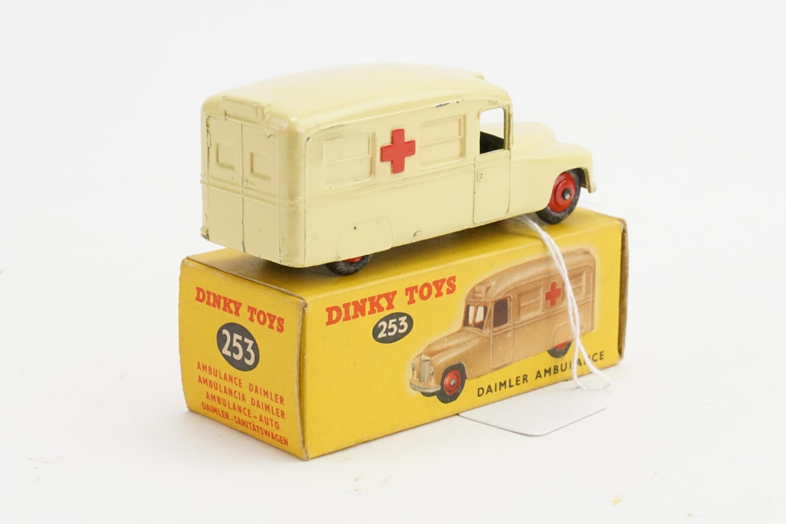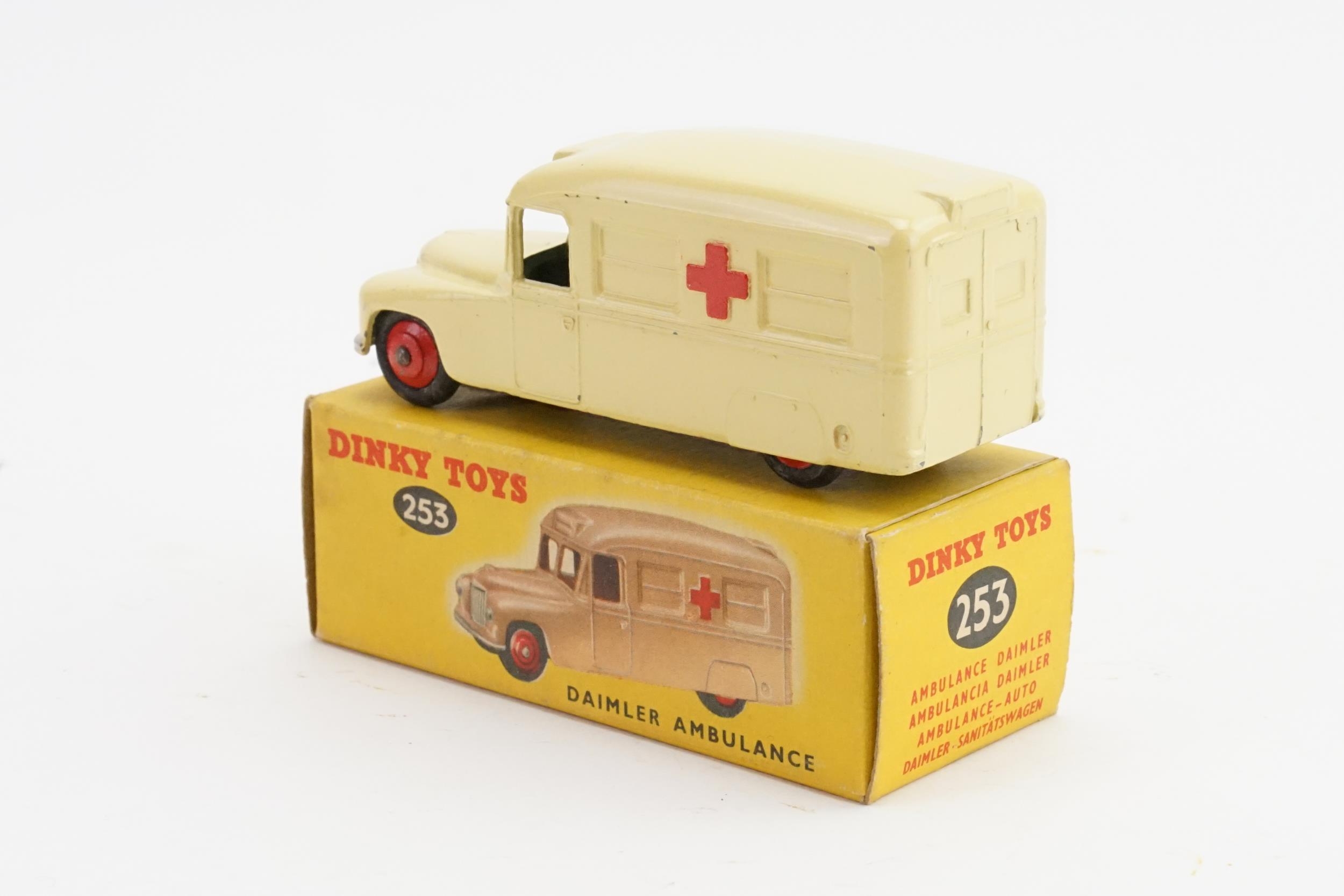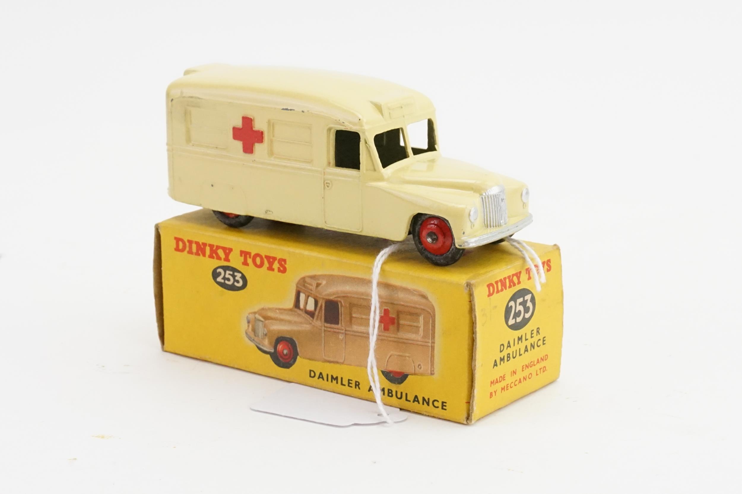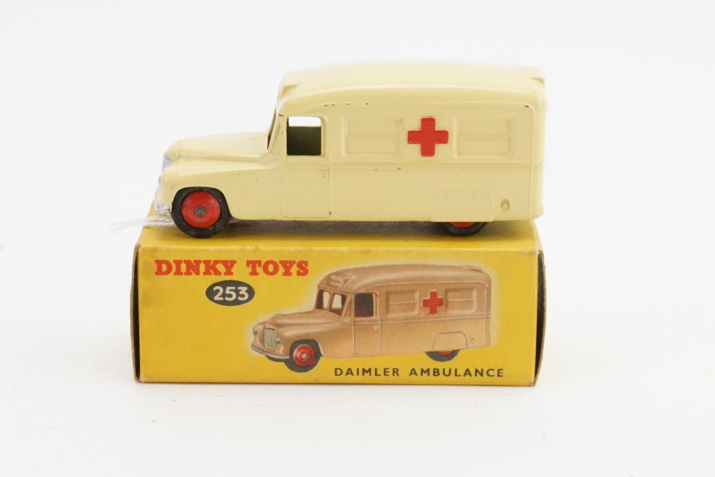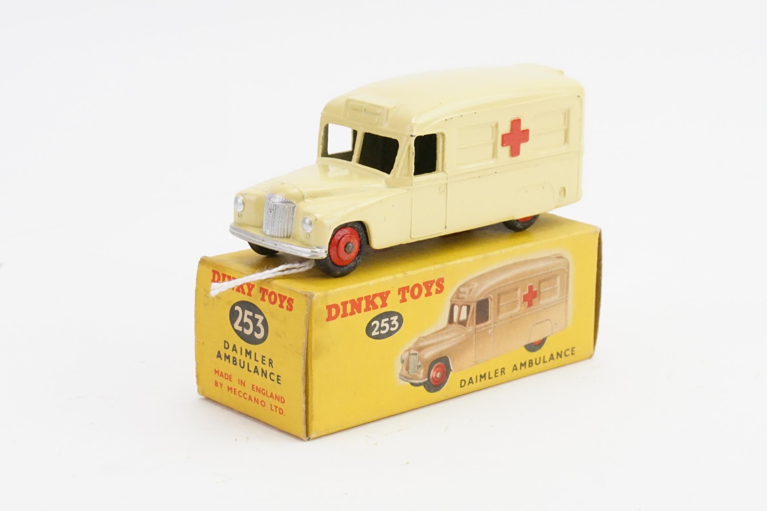 A Dinky No: 253 "Daimler Ambulance" finished in Cream with Red Hubs & Smooth Tyres. The model is in Near Mint Original Condition & comes in an Excellent Original Box.