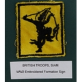 BRITISH TROOPS, SIAM WW2 Embroidered cloth Formation Sign Badge in excellent worn condition.