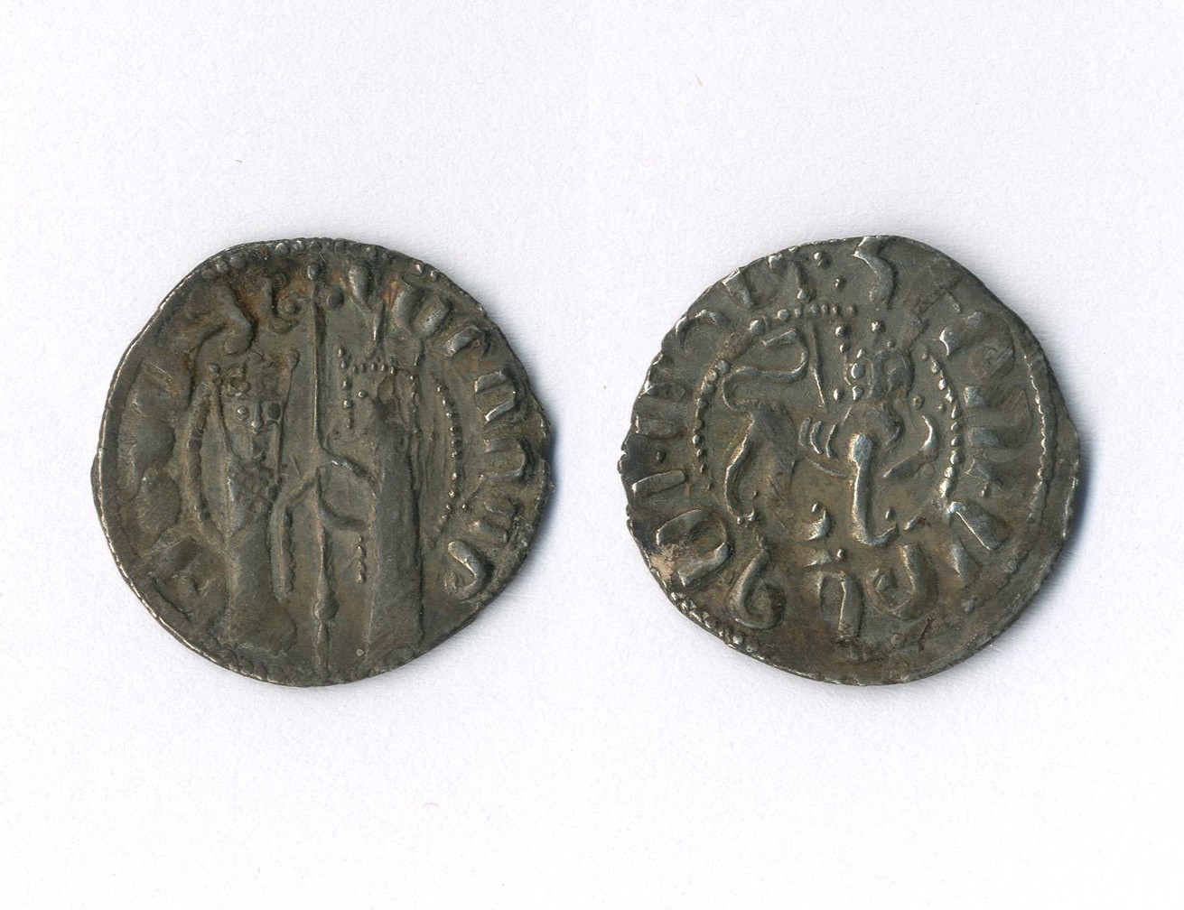 Armenia, Cilician Armenia, Hetoun I (1226-1271), silver tram, crowned lion right, Armenian legend, rev. King and Queen standing. GVF