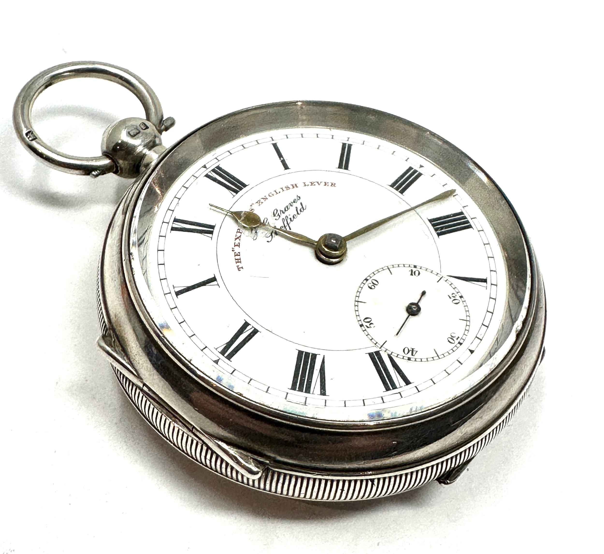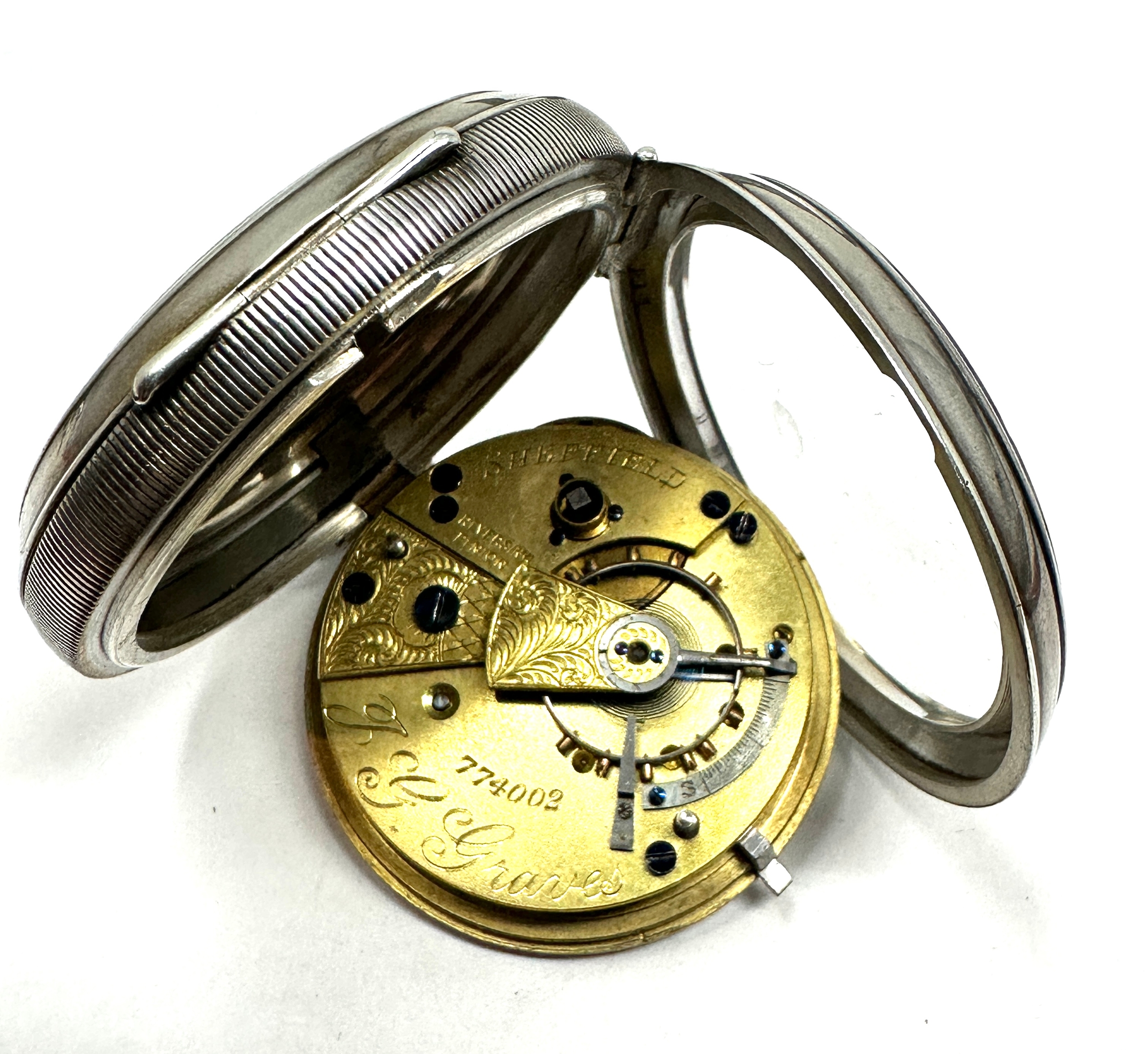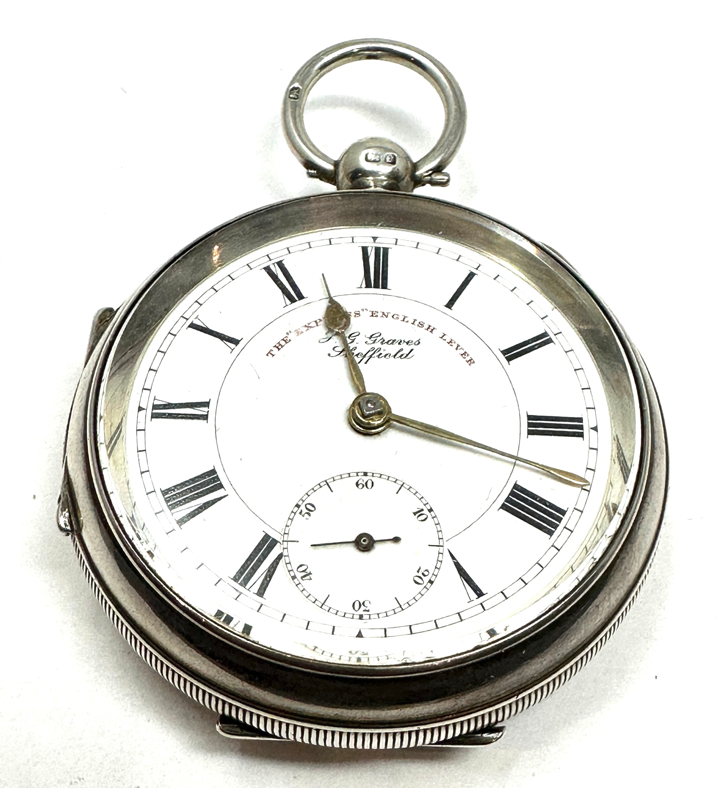 Antique the express english lever J.G.Graves Sheffield open faced pocket watch the balance spins weight 121g