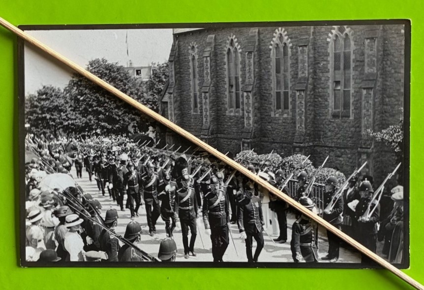 Real photographic postcard, Guernsey Church Parade, Victor Hugo celebrations July 1914.