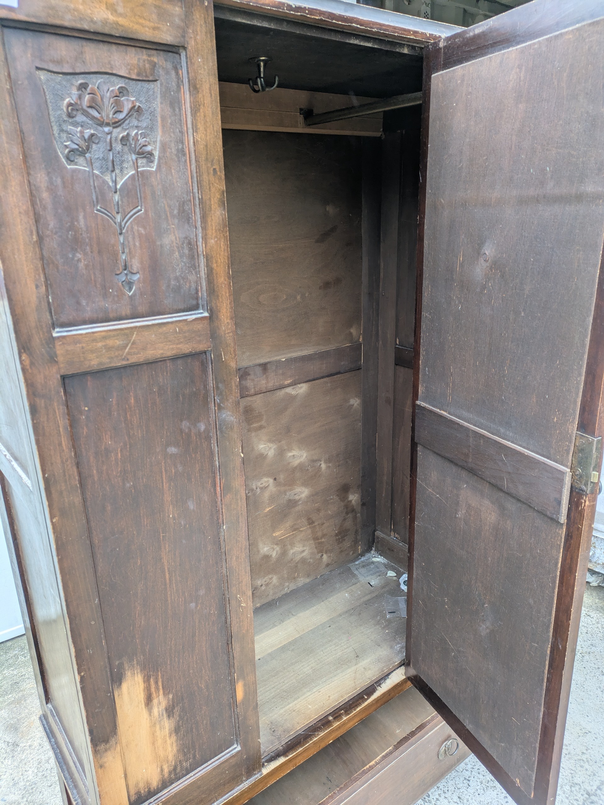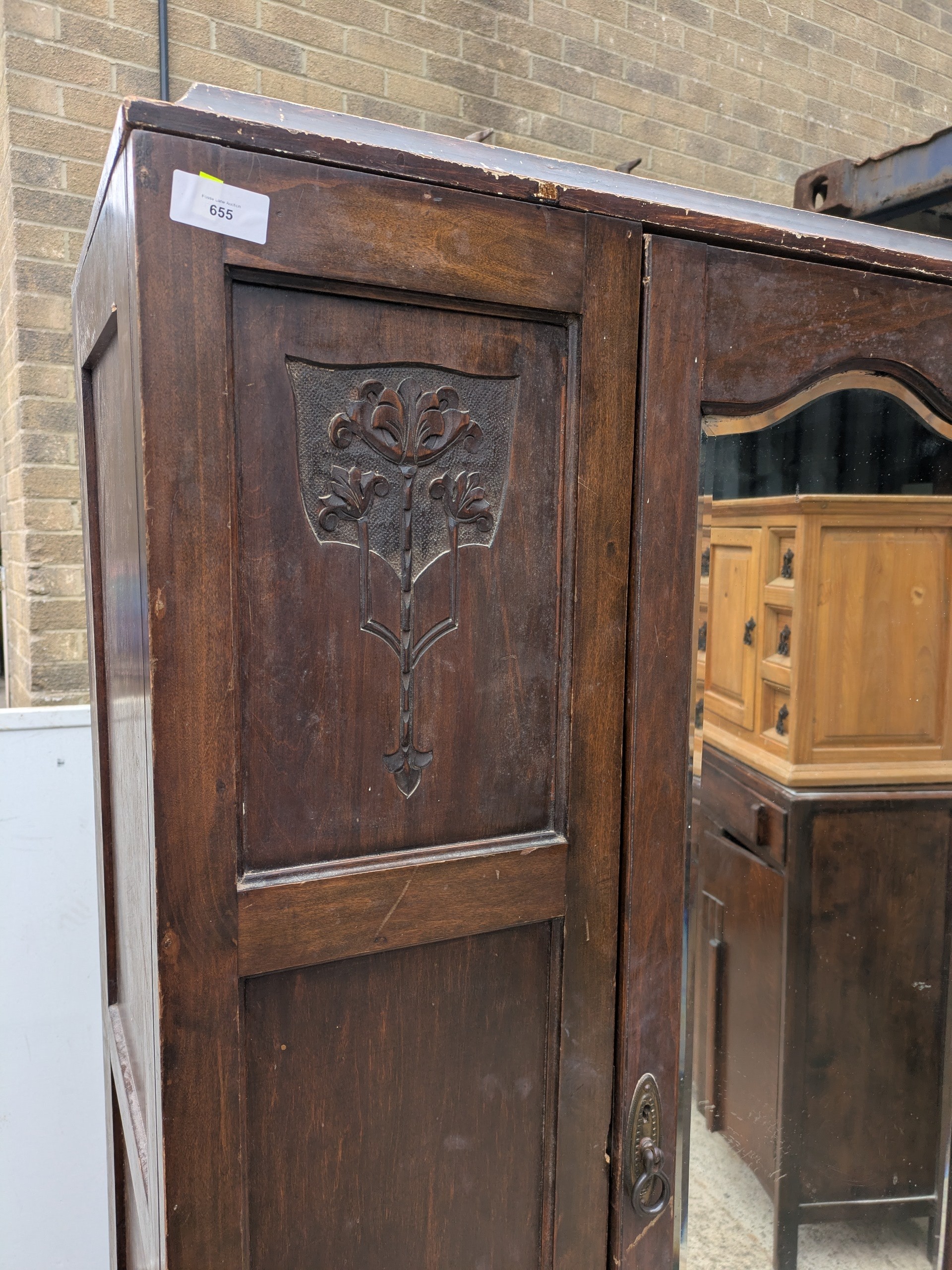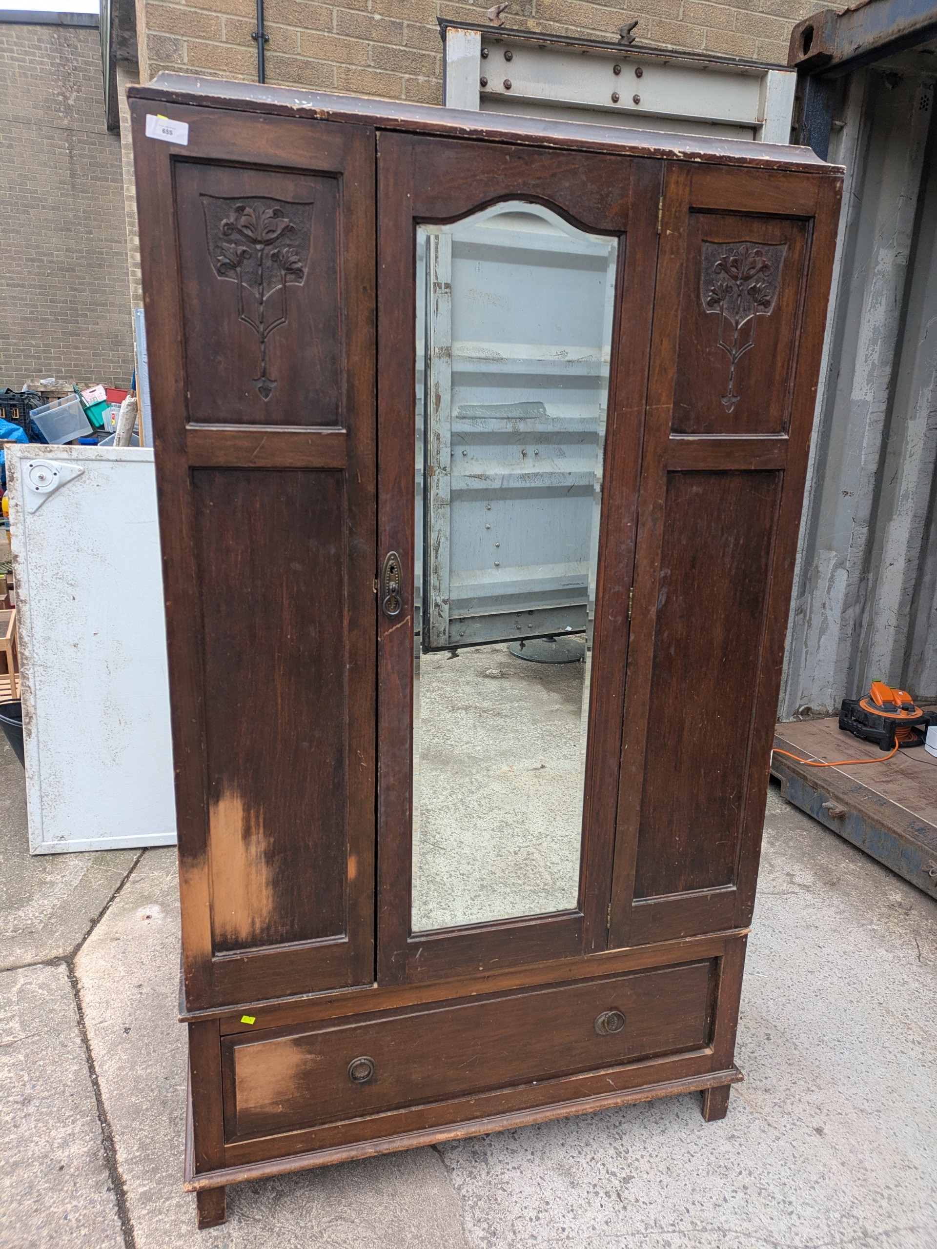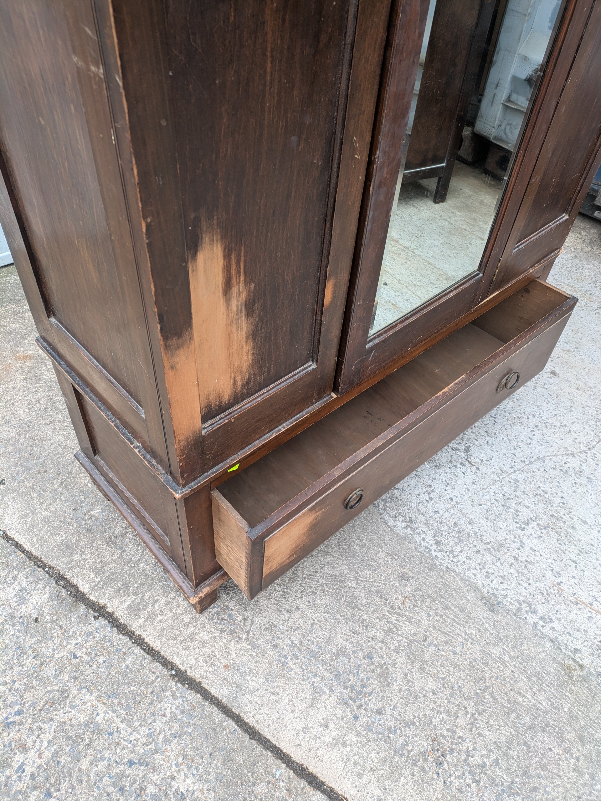 A vintage mahogany wardrobe with bevelled dressing mirror