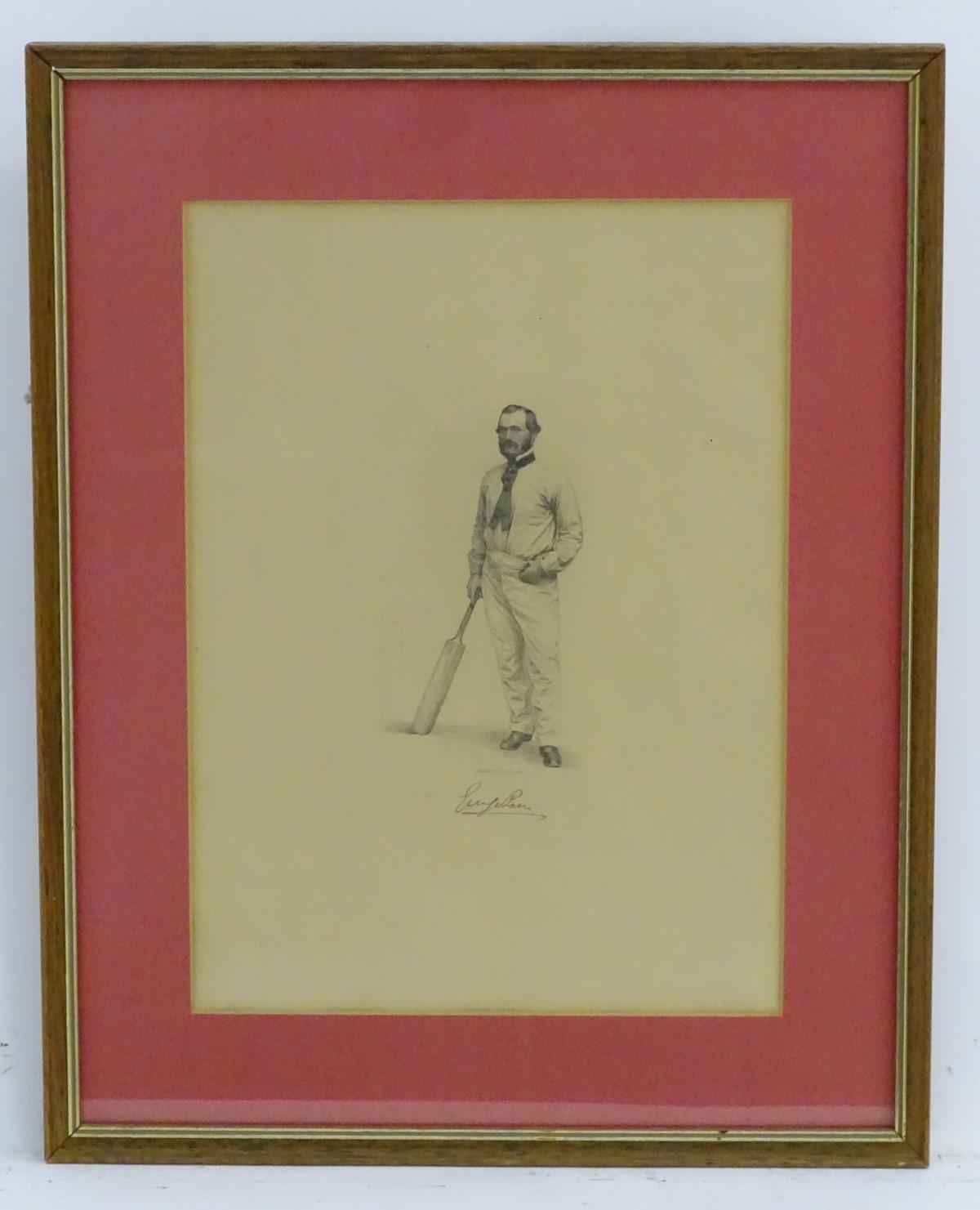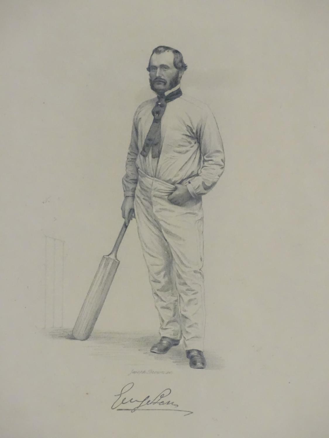 XIX-XX, Cricket print, A portrait of Leicestershire cricketer Joseph Henry Brown (1872 - 1915), Titled and signed under. Approx. 13 1/2'' x 9 1/2''