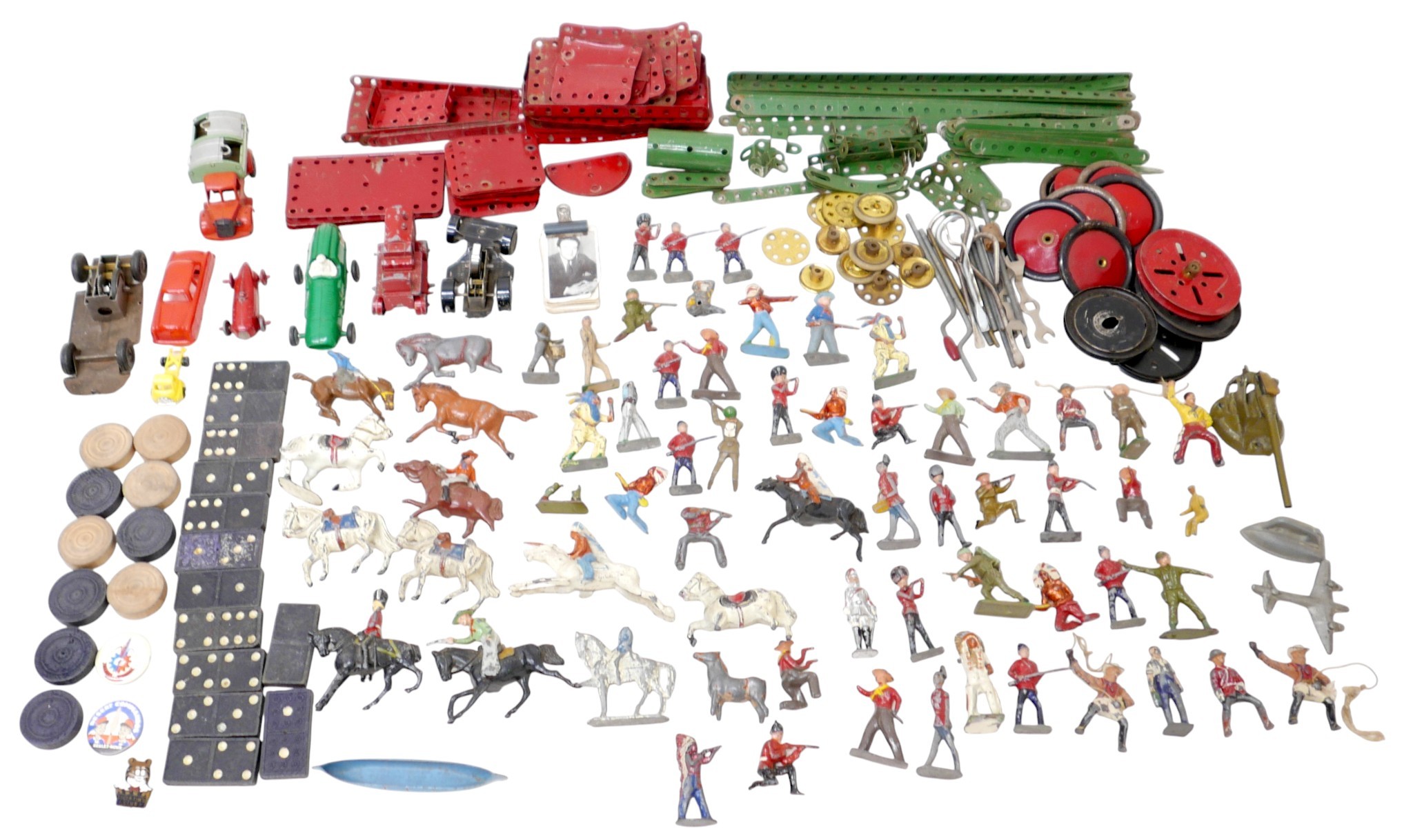 A collection of vintage lead figures, Meccano and toys.(1 bo...