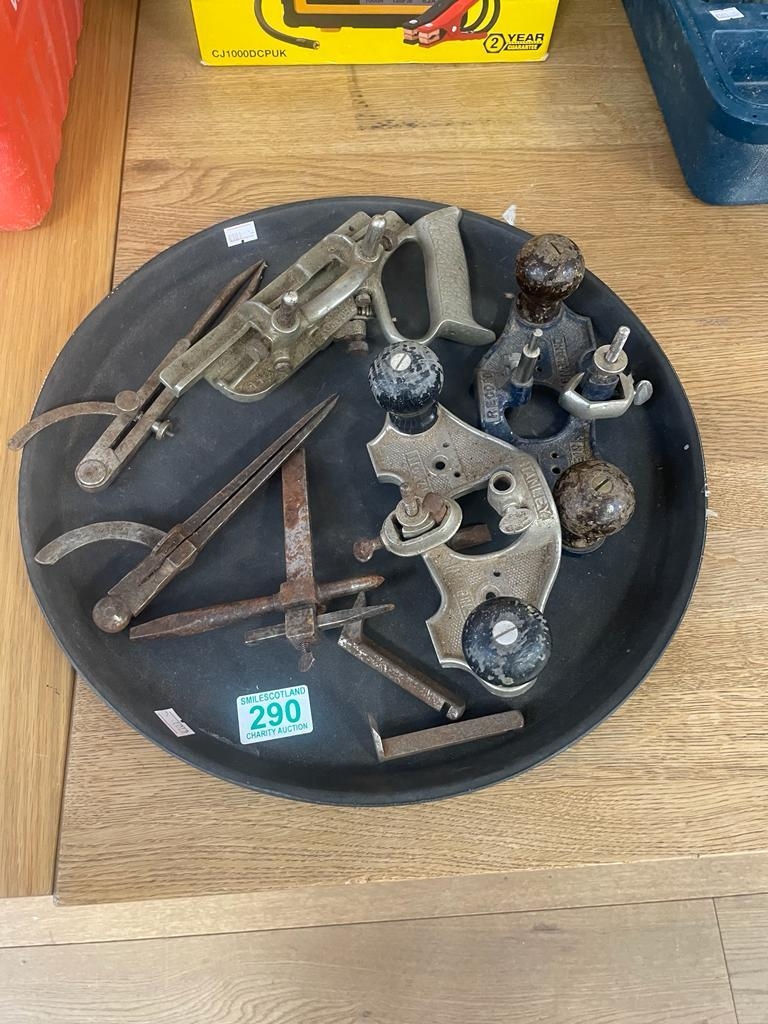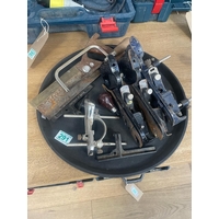 Tray lot Stanley and Record hand routers plus Record 44 plane, etc
