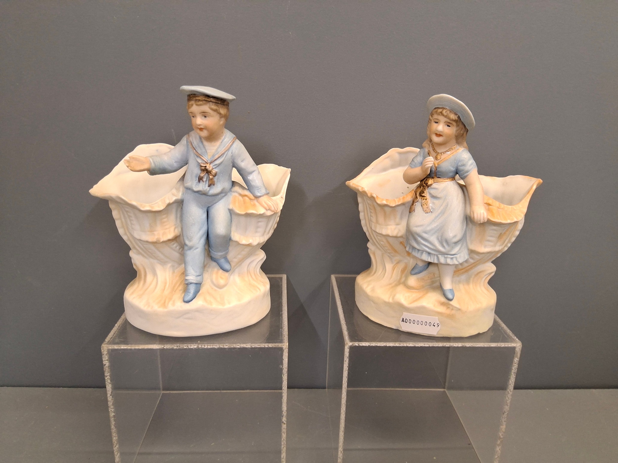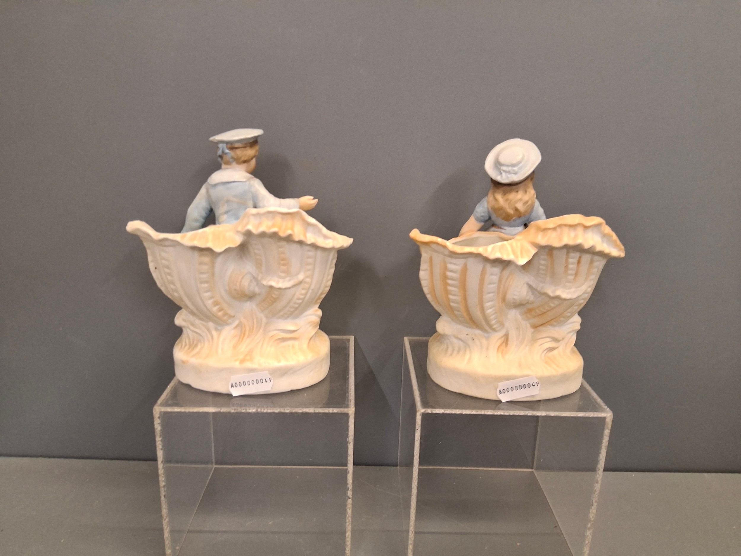 A pair of Bisque porcelain boy & girl figure vases
