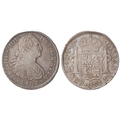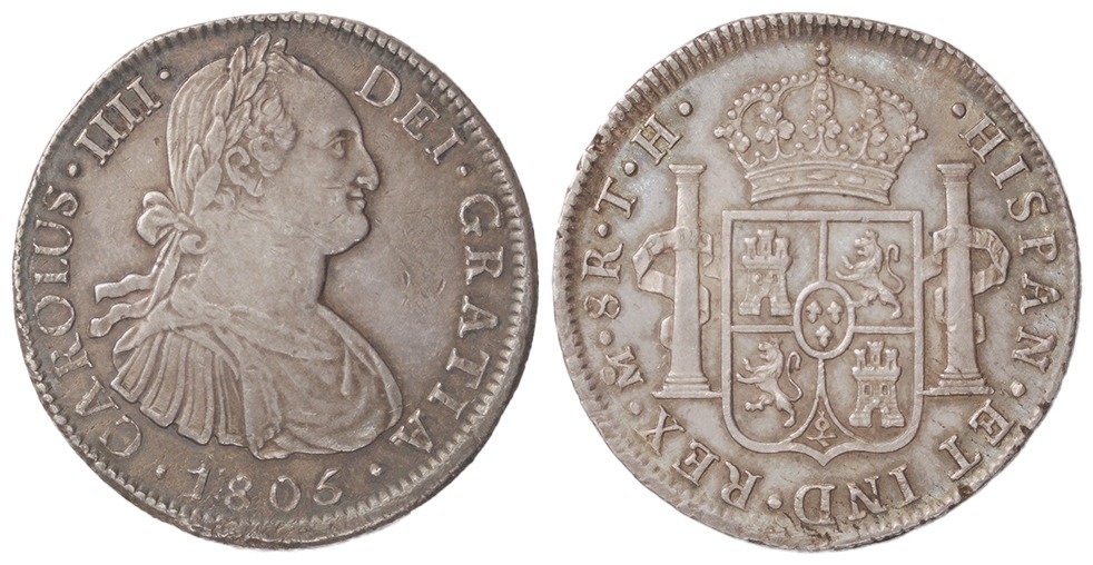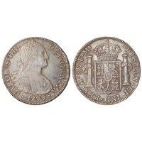 Spanish Mexico silver 8 Reales 1805 Mo TH, normal date, KM# 109, toned GVF/EF.