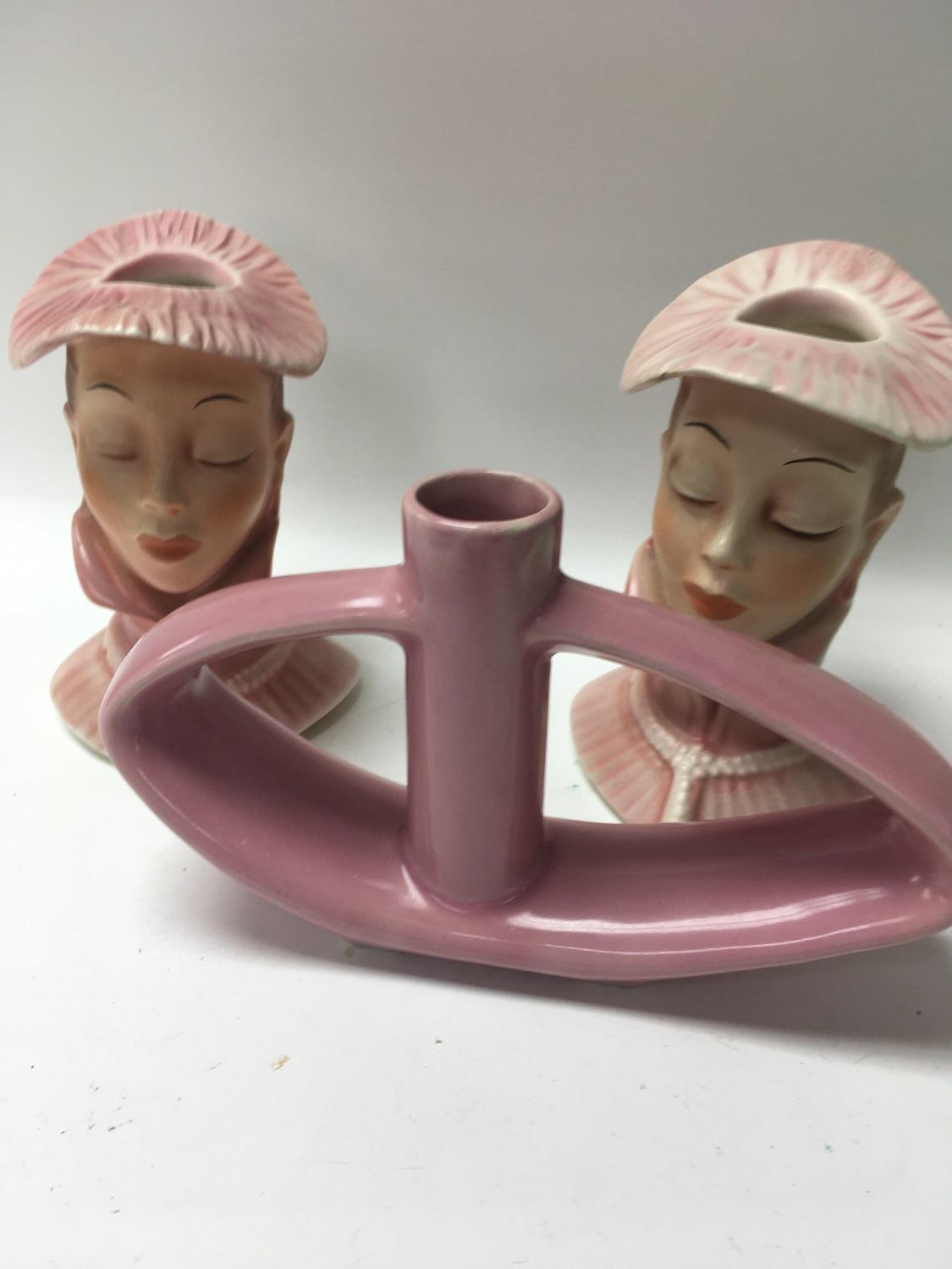 A pair of German wall pockets in the form maidens and a single contemporary vase .