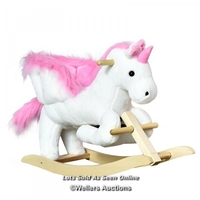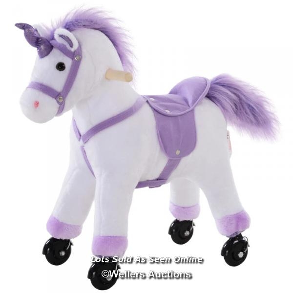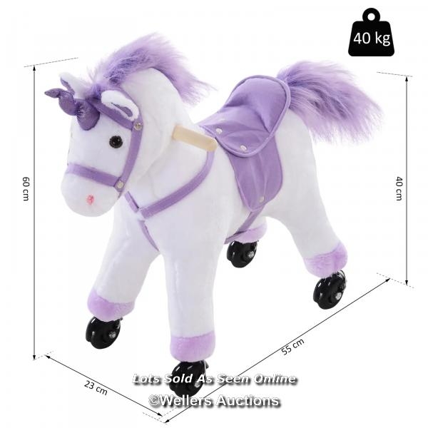RRP: 89.99 - KIDS ROCKING HORSE PLUSH RIDE ON WALKING UNICORN HORSE W/REALISTIC SOUND RIDE ON ROCKER WITH HANDLEBAR FOR AGE 3+ PURPLE / BOXED / NOT FULLY CHECKED / SEE IMAGES